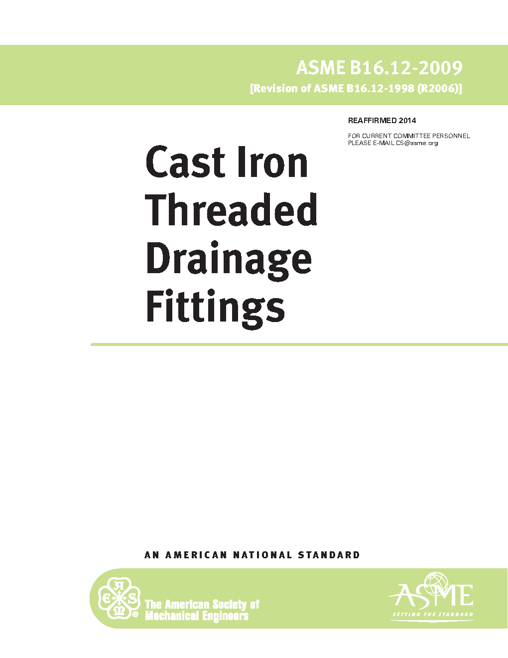 This Standard for cast iron threaded drainage fittings covers: (a) size and method of designating openings in reducing fittings (b) marking (c) materials (d) dimensions and tolerances (e) threading (f) ribs (g) coatings (h) face bevel. This standard covers fittings intended for use in gravity drainage systems subject only to the gravity head of waste liquids at temperatures from ambient to approximately 100 deg. C (212 deg. F). This standard includes metric dimensions as the primary units while U.S. Customary units are secondary and shown in parenthetical or separate forms.
