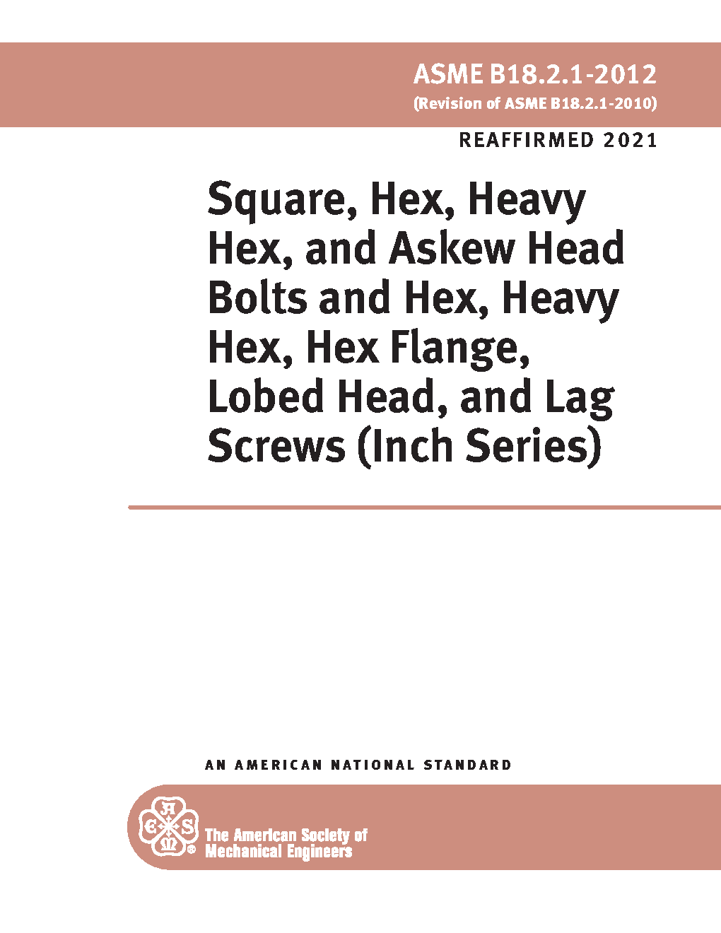 ASME B18.2.1-2012 (R2021) + ERRATA
