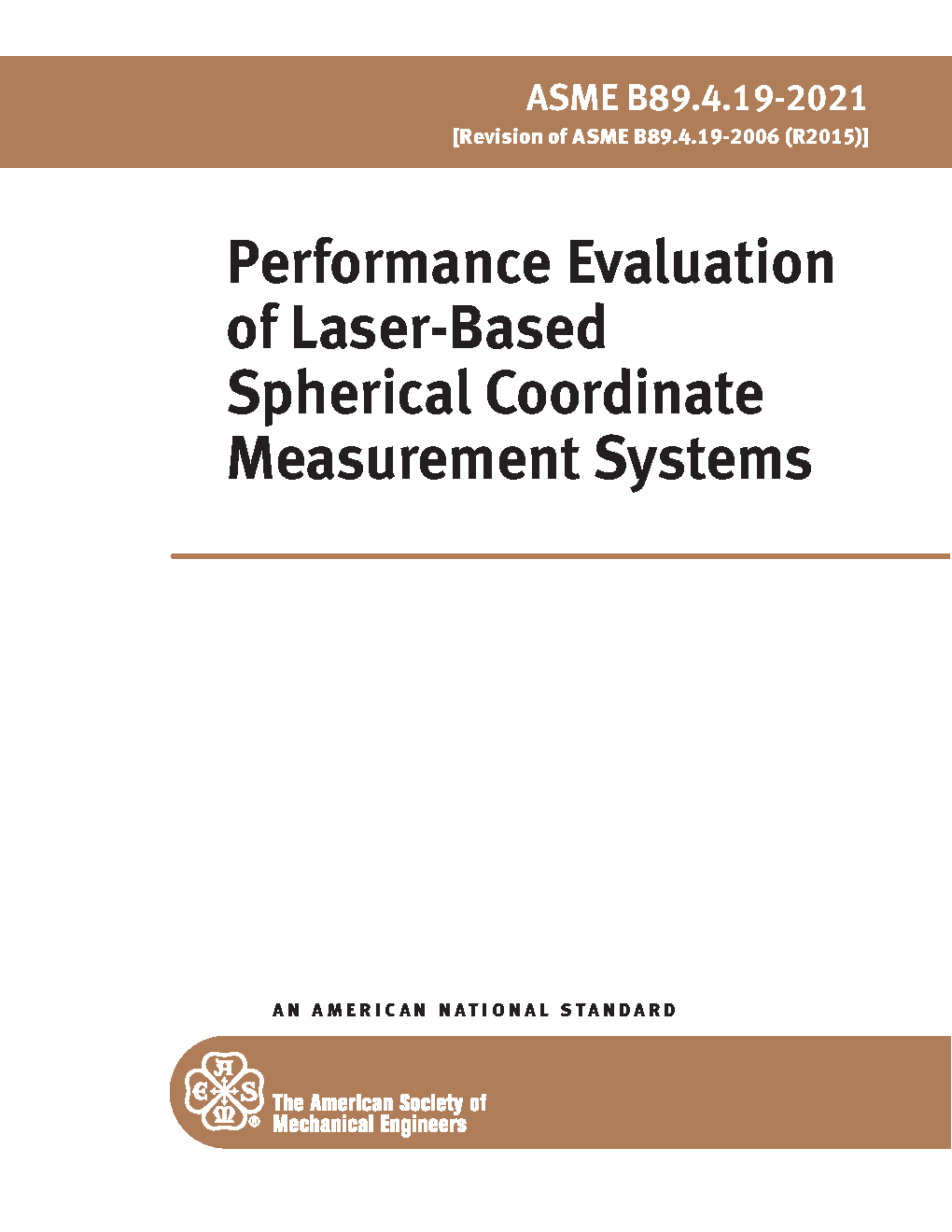 This Standard prescribes methods for the performance evaluation of laser-based spherical coordinate measurement systems and provides a basis for performance comparisons among such systems. Definitions, environmental reguirements, and test methods are included with emphasis on point-to-point length measurements. The specified test methods are appropriate for the performance evaluation of a majority of such instruments and are not intended to replace more complete tests that may be required for special applications. This Standard establishes requirements and methods for specifying and testing the performance of a class of spherical coordinate measurement systems called laser trackers.¹ A laser tracker is an instrument that directs the light from a ranging device to a retroreflecting target (called a retroreflector) by means of a two-axis rotary steering mechanism while monitoring the angular position of these rotary axes, thereby forming a spherical coordinate metrology system. Such an instrument may measure a static target, track and measure a moving target, or measure (and perhaps track) some combination of static and moving targets. This Standard focuses specifically on the use of laser trackers as industrial measurement tools rather than their use in surveying or geodesy. Specified tests are designed to evaluate the point-to-point length measurement capabilities of these instruments. Additional tests are included that evaluate the range measurement capability of laser trackers equipped with absolute distance meters (ADMs). The tests do not evaluate workpiece thermal compensation capability and are not sensitive to spherically mounted retroreflector (SMR) imperfections.