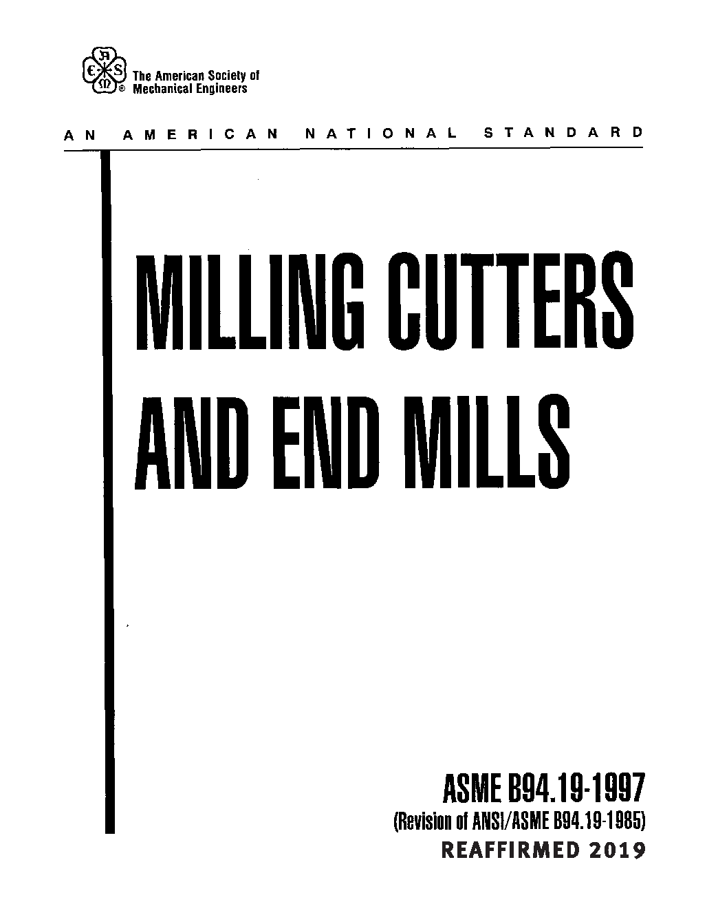 This Standard covers high speed steel milling cutters and end mills of one piece construction as listed in Tables 1 through 62. It also includes general definitions, sizes, and tolerances.