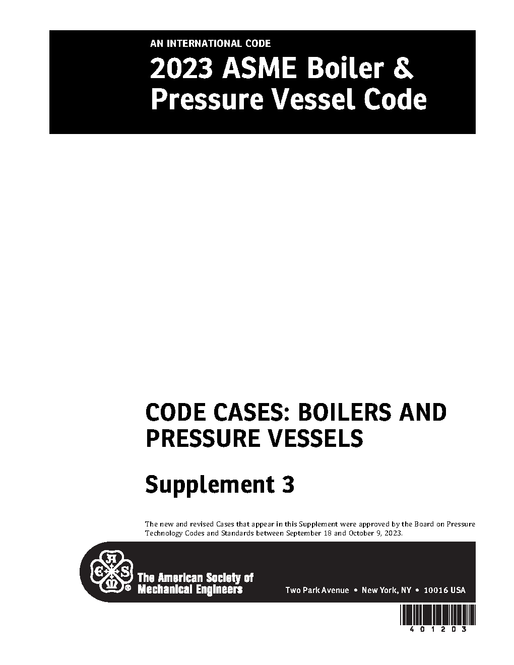 2023 ASME BPVC Code Cases: Boilers and Pressure Vessels, Supplement 3