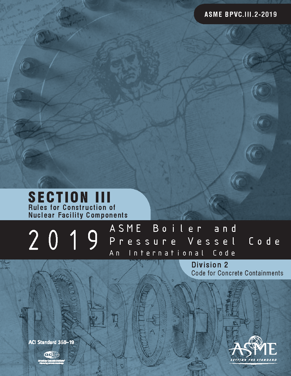 This Division contains requirements for the material, design, construction, fabrication, testing, examination, and overpressure protection of concrete containment structures, pre-stressed or reinforced. These requirements are applicable only to those components that are designed to provide a pressure retaining or containing barrier. They are not applicable to other support structures, except as they directly affect the components of the systems. This Section contains appendices, both mandatory and nonmandatory, for Division 2 construction. Careful application of this Section will help users to comply with applicable regulations within their jurisdictions, while achieving the operational, cost and safety benefits to be gained from the many industry best-practices detailed within these volumes.