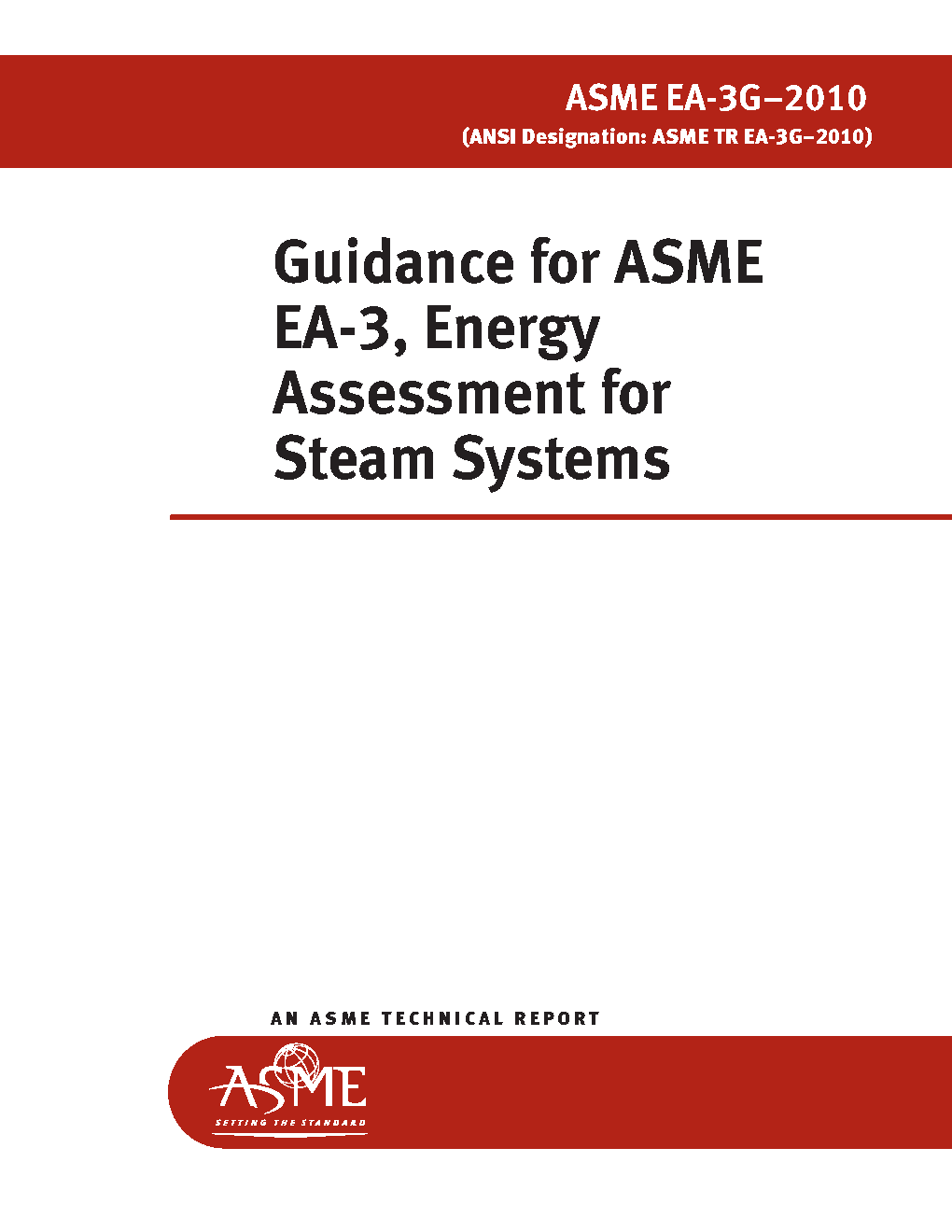 STANDARDS Guidance for ASME EA-3, Energy Assessment for Steam Systems [ANSI designation: ASME TR EA-3G-2010] Guidance for ASME EA-3, Energy Assessment for Steam Systems [ANSI designation: ASME TR EA-3G-2010] EA-3G - 2010 Share ASME Topics Energy Efficiency Format Member Price List Price Availability Order No. Qty Print-Book $43.00 $43.00 Ships in 3-5 Days E14310 1 Add to cart Digital Book $43.00 $43.00 Immediately E1431Q 1 Add to cart Important information regarding ASME PDFsDescription This guidance document provides an application guide on how to utilize ASME EA-3, Energy Assessment for Steam Systems. This guidance document provides background and supporting information to assist in applying the standard. ASME EA-3 sets the requirements that need to be performed during the assessment. ASME EA-3 was written in a form suitable for a standard, with concise text and without examples or explanations. This document was developed to be used in conjunction with the standard to give basic guidance on how to fulfill the requirements of the standard. This document is only a guide, it does not set any new requirements, and ASME EA-3 can be used with or without this document.