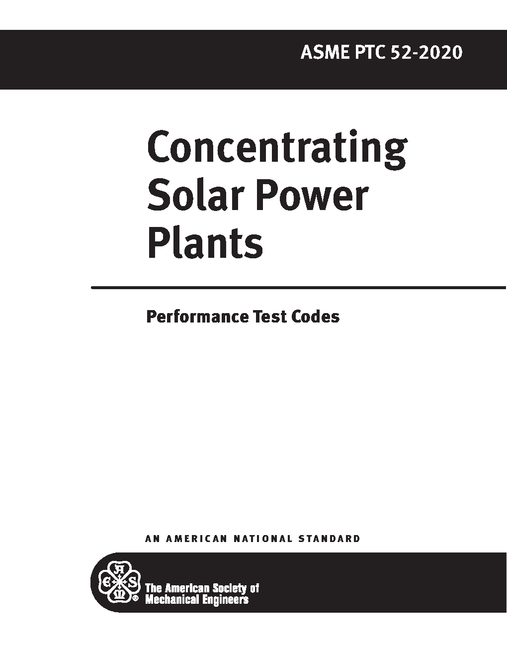 This Code provides procedures, methods, and definitions for performance testing the solar-to-thermal conversion systems (i.e., solar thermal systems) associated with concentrating solar power (CSP) plants of parabolic trough, linear Fresnel, and power tower designs.