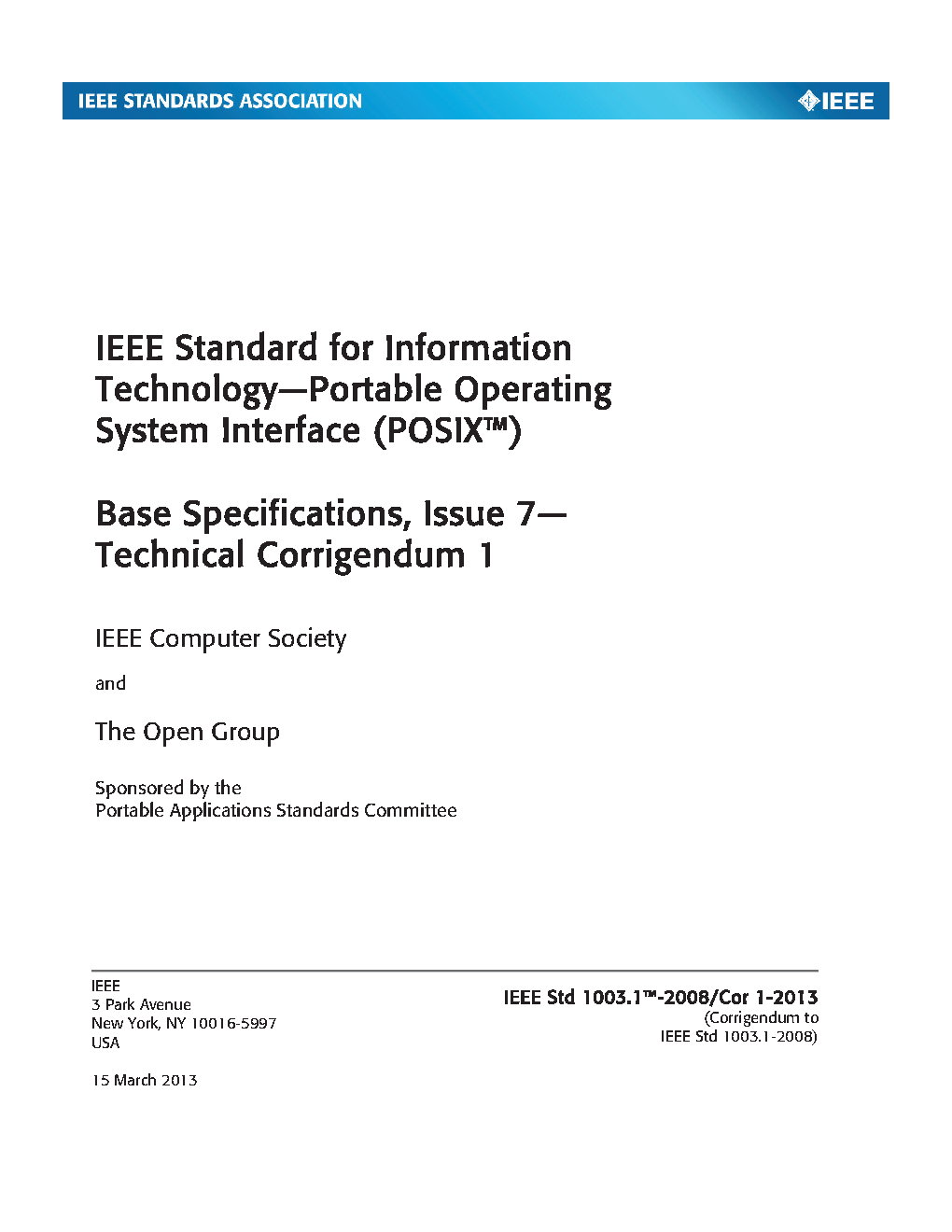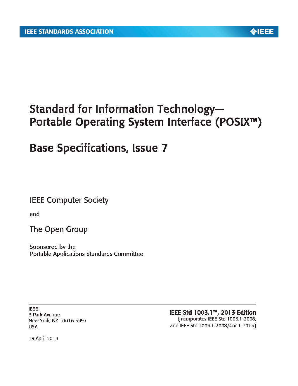 POSIX.1-2008 is simultaneously IEEE Std 1003.1-2008 and The Open Group Standard Base Specifications, Issue 7. This 2016 Edition includes IEEE Std 1003.1-2008/Cor 1-2013 and IEEE Std 1003.1-2008/Cor 2-2016 incorporated into IEEE Std 1003.1-2008 (the base document). The Technical Corrigenda address problems discovered since the approval of IEEE Std 1003.1-2008. POSIX.1-2008 defines a standard operating system interface and environment, including a command interpreter (or “shell”), and common utility programs to support applications portability at the source code level. POSIX.1-2008 is intended to be used by both application developers and system implementors and comprises four major components (each in an associated volume):