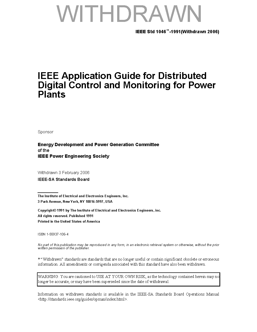 IEEE Application Guide for Distributed Digital Control and Monitoring for Power Plants