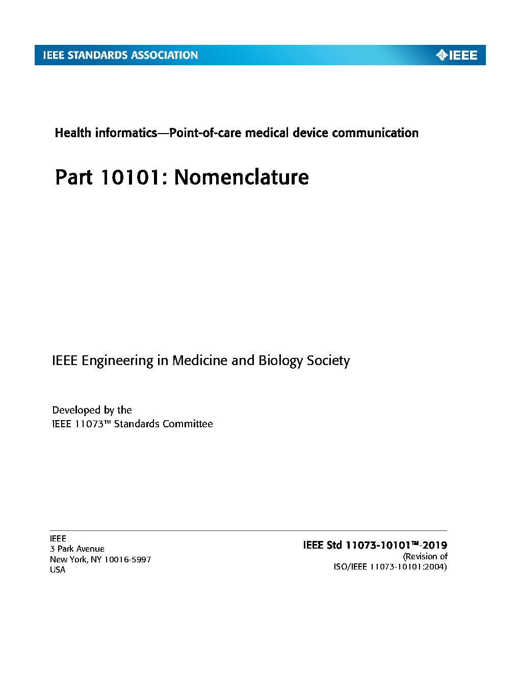 The purpose of this standard is to define the unique terms and concepts required for point-of-care medical device data communication. This document will serve as the data dictionary for present and future medical device data communication applications.