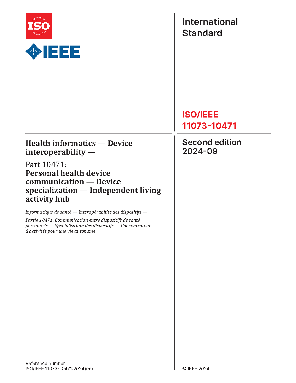 IEEE Health Informatics--Device Interoperability--Part 10471: Personal Health Device Communication--Device Specialization--Independent Living Activity Hub
