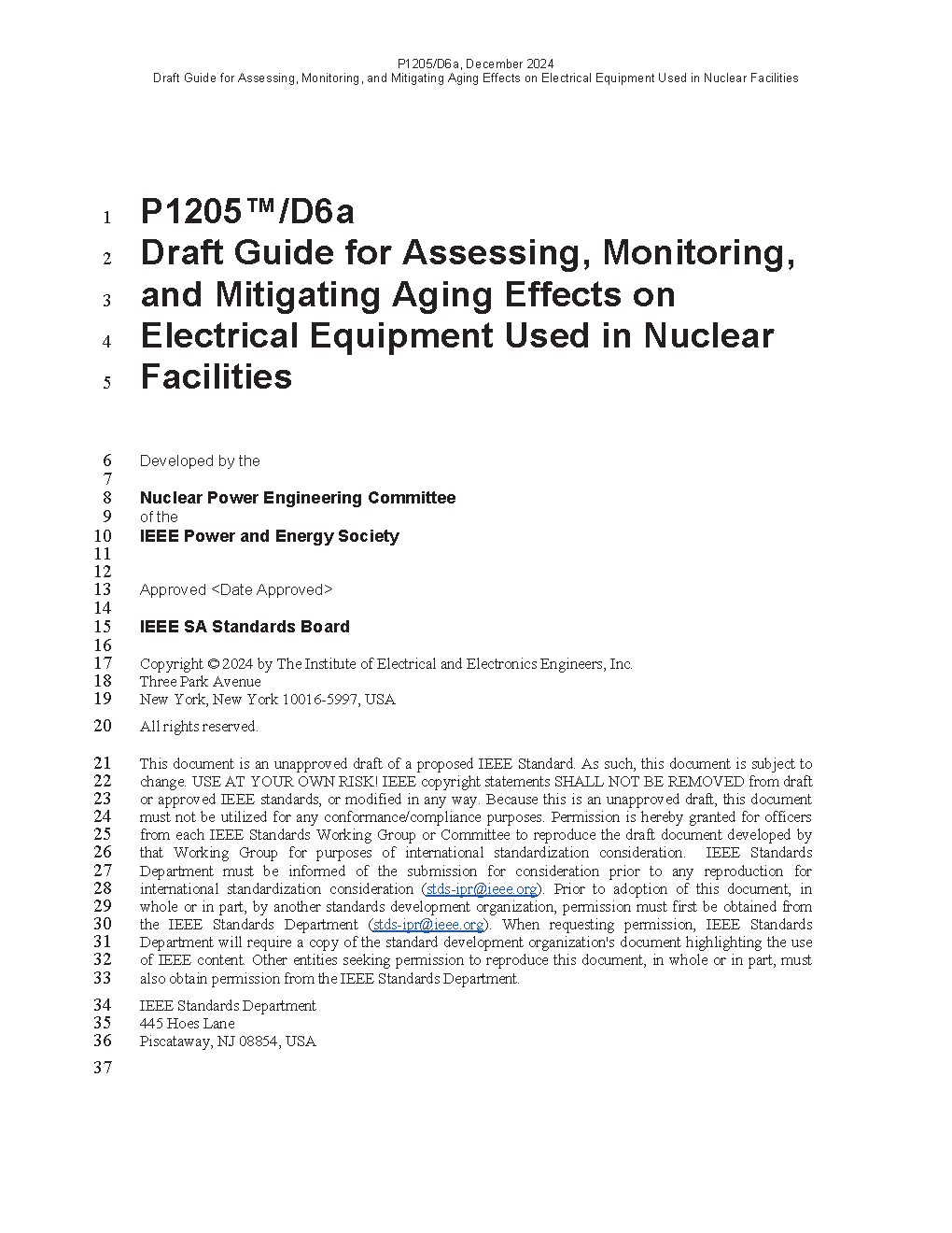 The scope of the corrigendum is to correct three typographical errors of a minor technical nature (two in Clause 6.6.3 and one in Annex D, Clause D.1.7) related to performing thermal aging analysis.