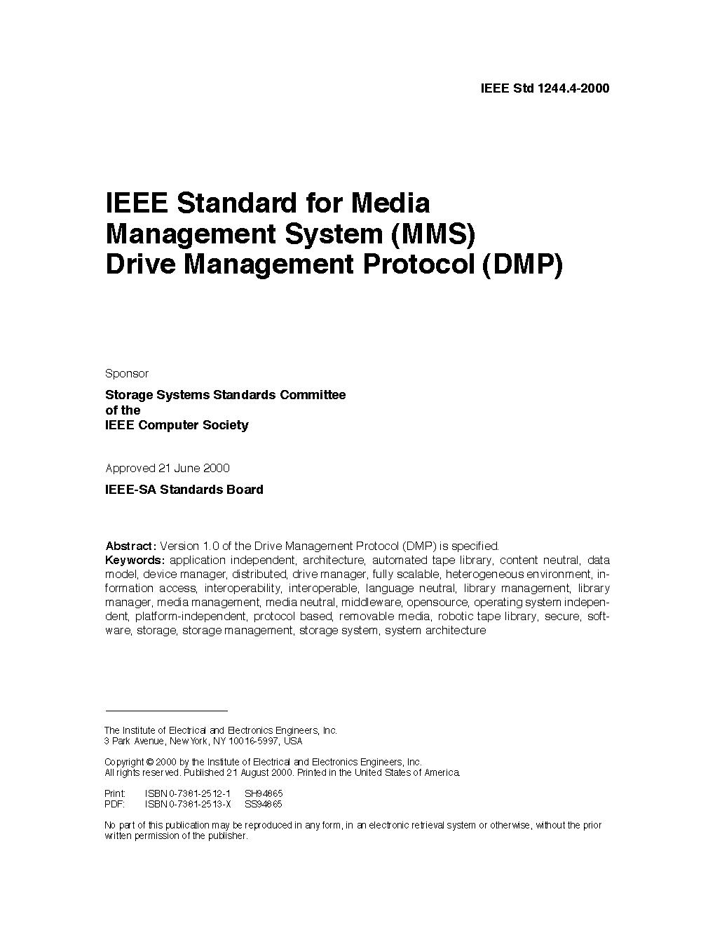 IEEE Standard for Media Management System (MMS) Drive Management Protocol (DMP)