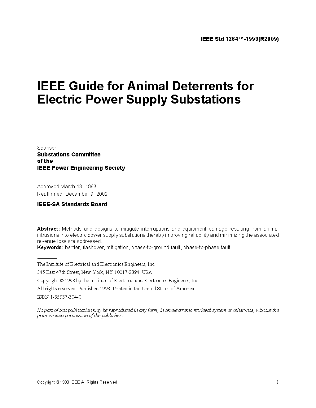 IEEE Guide for Animal Mitigation for Electric Power Supply Substations