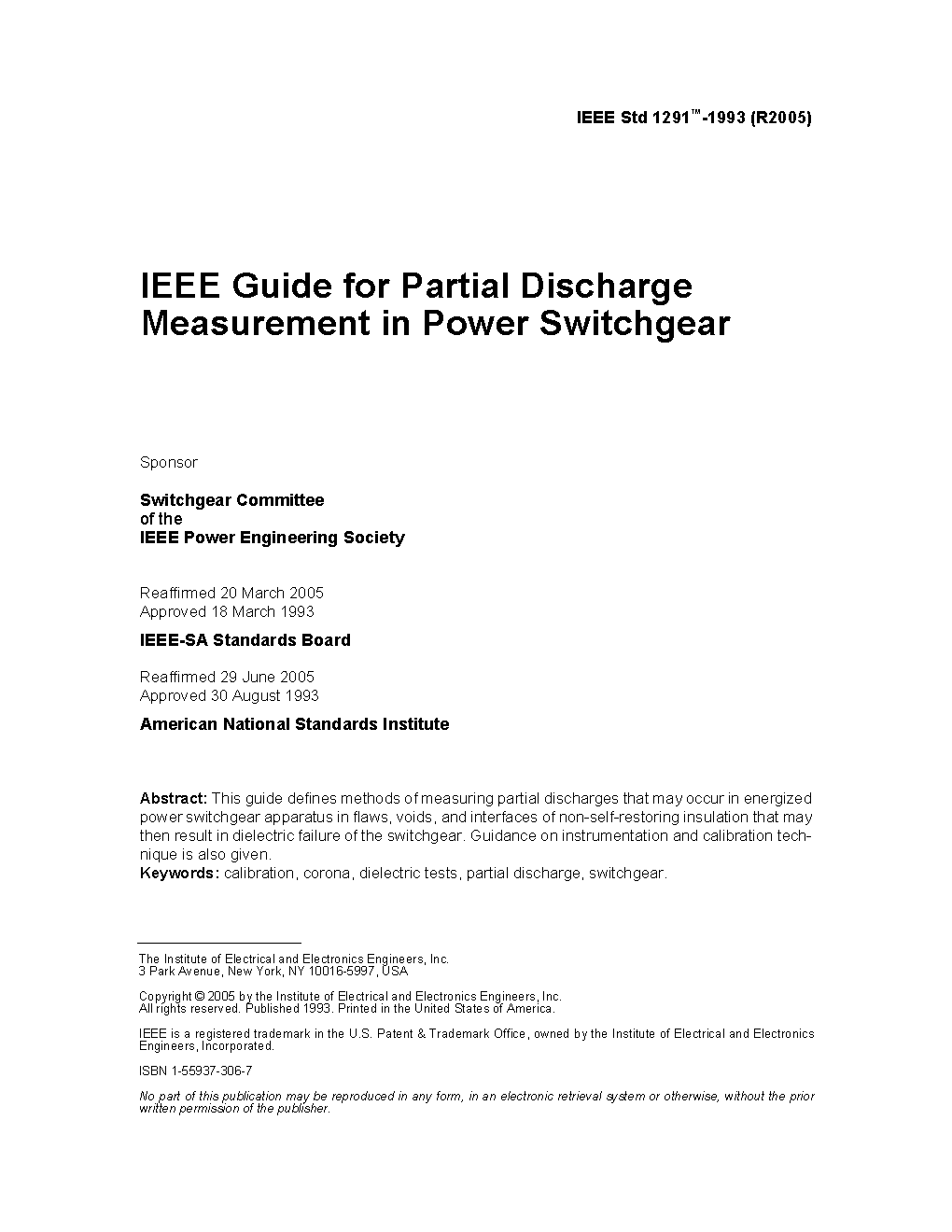 IEEE Guide for Partial Discharge Measurement in Power Switchgear