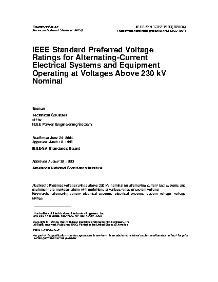 This standard provides preferred voltage ratings above 230 kV nominal for alternating-current (ac) systems and equipment.
