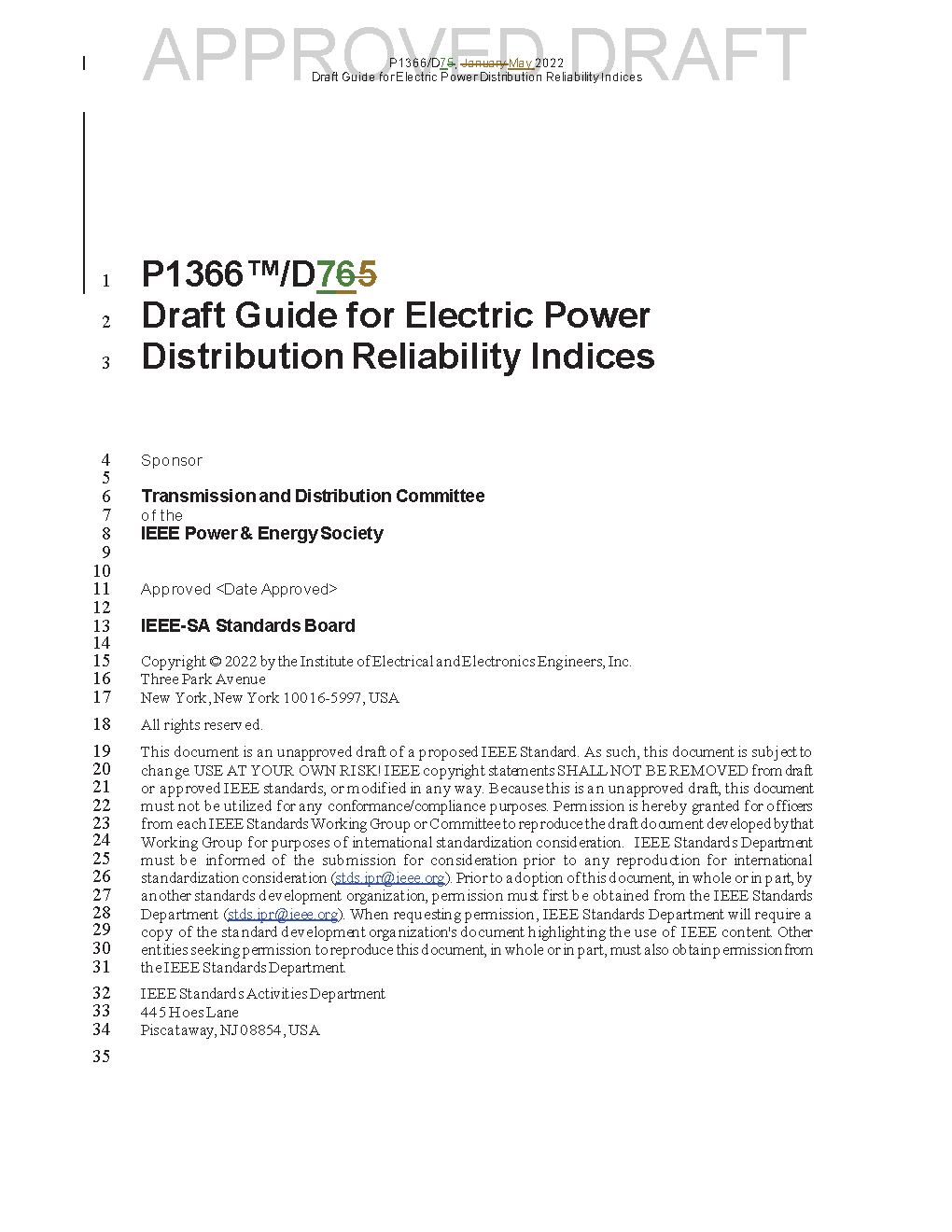 Distribution reliability indices and factors that affect their calculations are defined in this guide. The indices are intended to apply to distribution systems, substations, circuits, and defined regions.