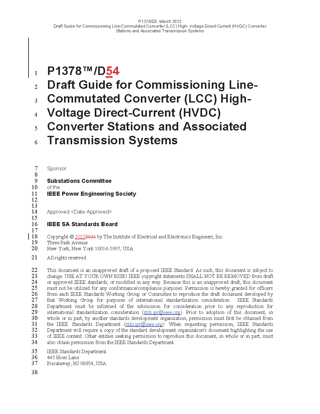 IEEE Guide for Commissioning High-Voltage Direct-Current (HVDC) Converter Stations and Associated Transmission Systems