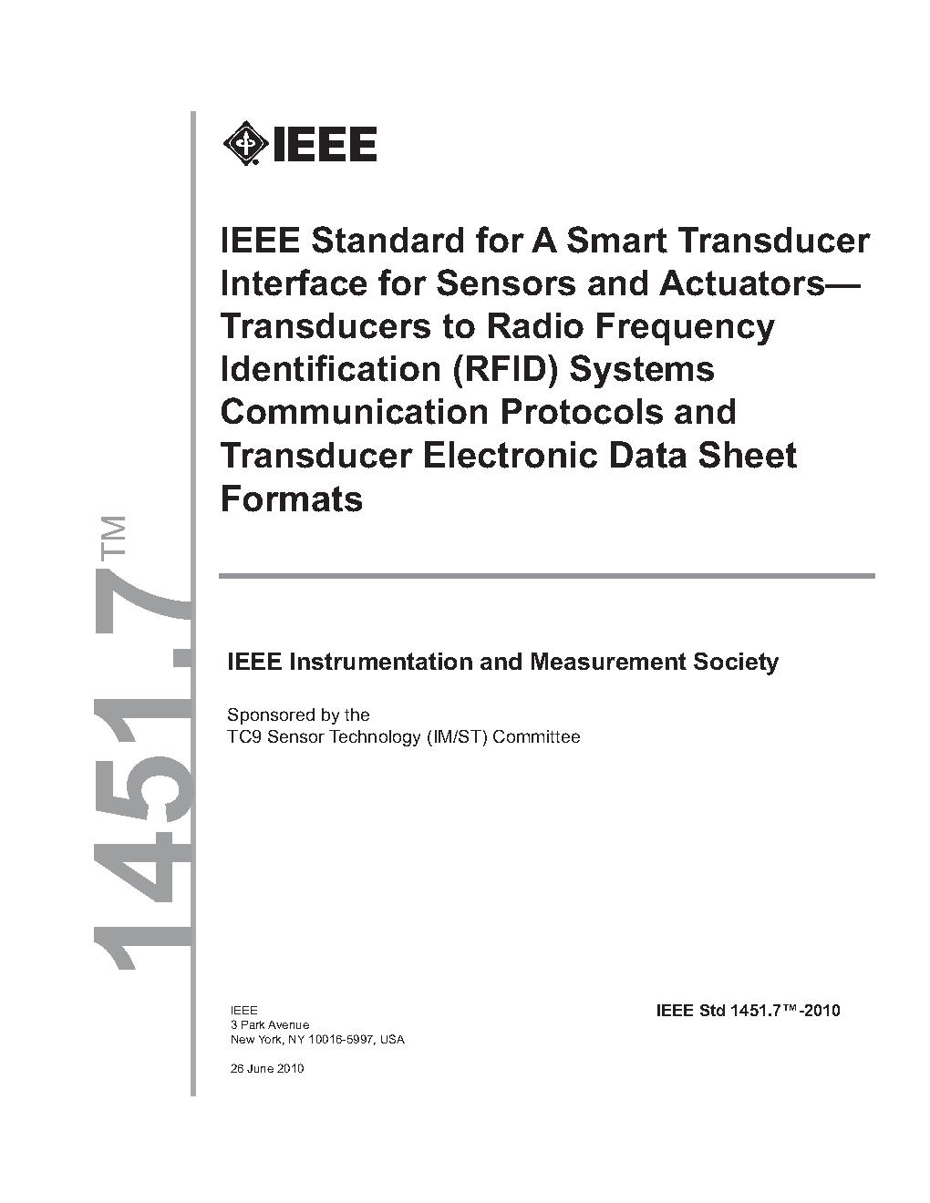 This standard defines data formats to facilitate communications between radio frequency identification (RFID) systems and smart RFID tags with integral transducers (sensors and actuators). The standard defines new transducer electronic data sheet (TEDS) formats based on the IEEE 1451 family of standards.