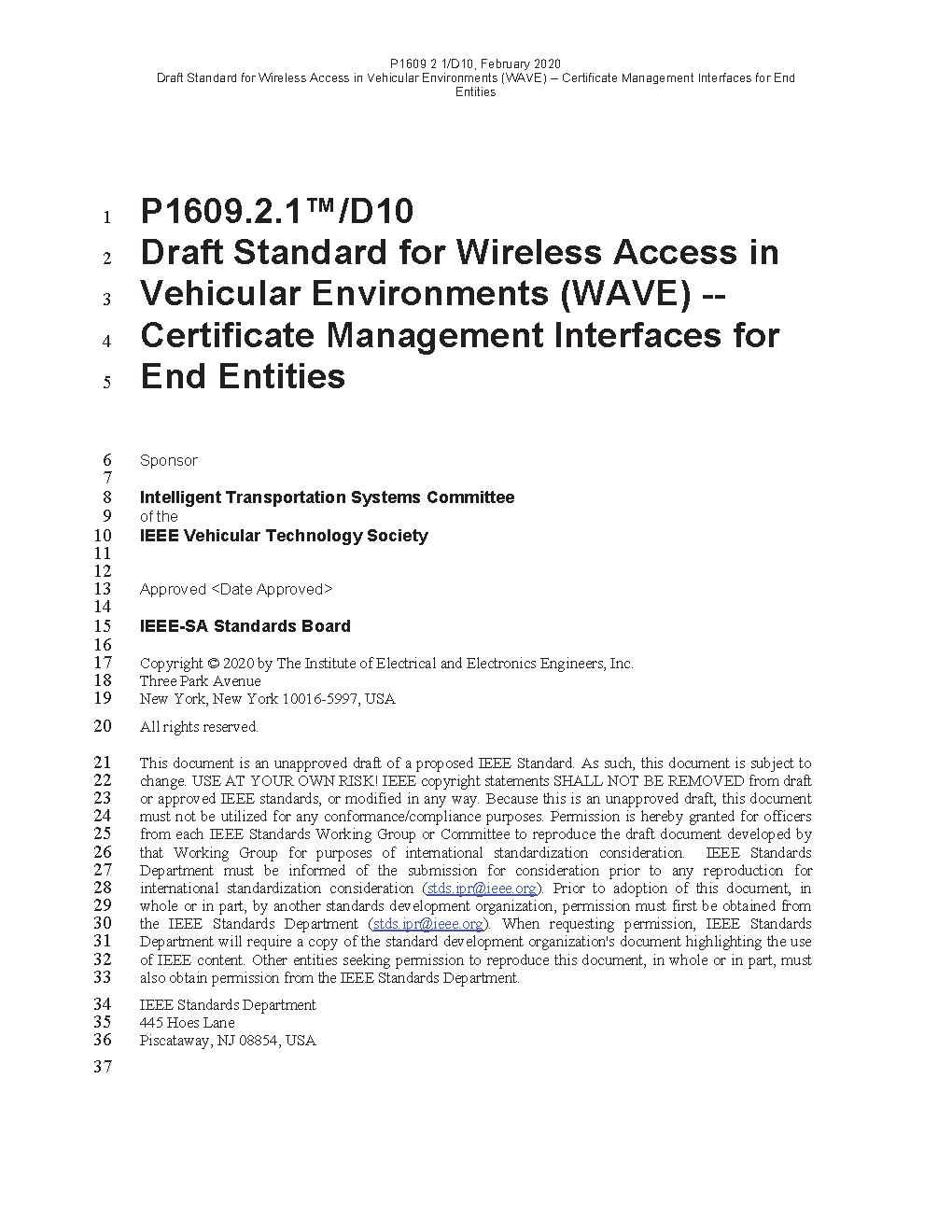 IEEE Standard for Wireless Access in Vehicular Environments (WAVE)--Certificate Management Interfaces for End Entities--Corrigendum 1