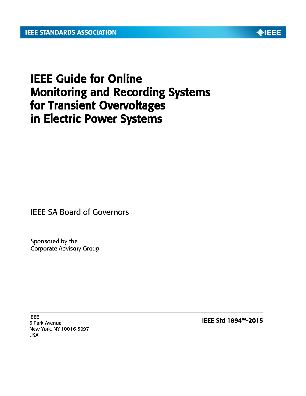 IEEE Guide for Online Monitoring and Recording Systems for Transient Overvoltages in Electric Power Systems