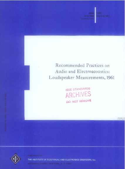 IEEE Recommended Practice on Audio and Electro Acoustics Loudspeaker Measurements 1961