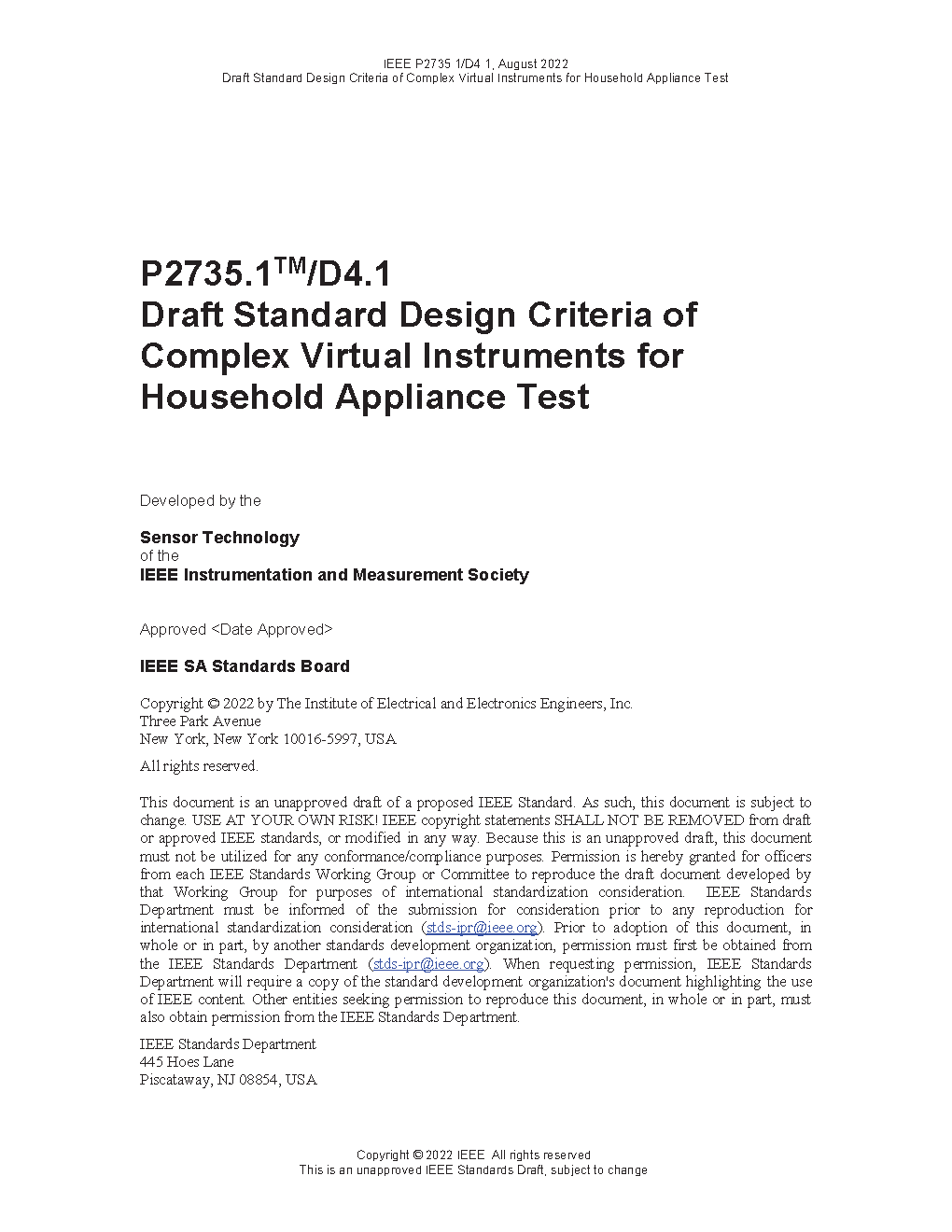 IEEE Standard Design Criteria of Complex Virtual Instruments for Household Appliance Test