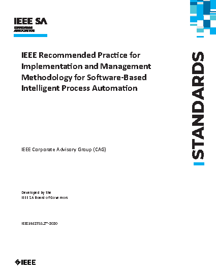 This recommended practice describes implementation and management approaches and methods for enterprise implementation of Software Based Intelligent Process Automation (SBIPA) technologies (commonly known as IPA). The recommended practice includes the exploration of technology capabilities, development of strategy, product evaluation, platform implementation, along with management and governance for service providers and end users.