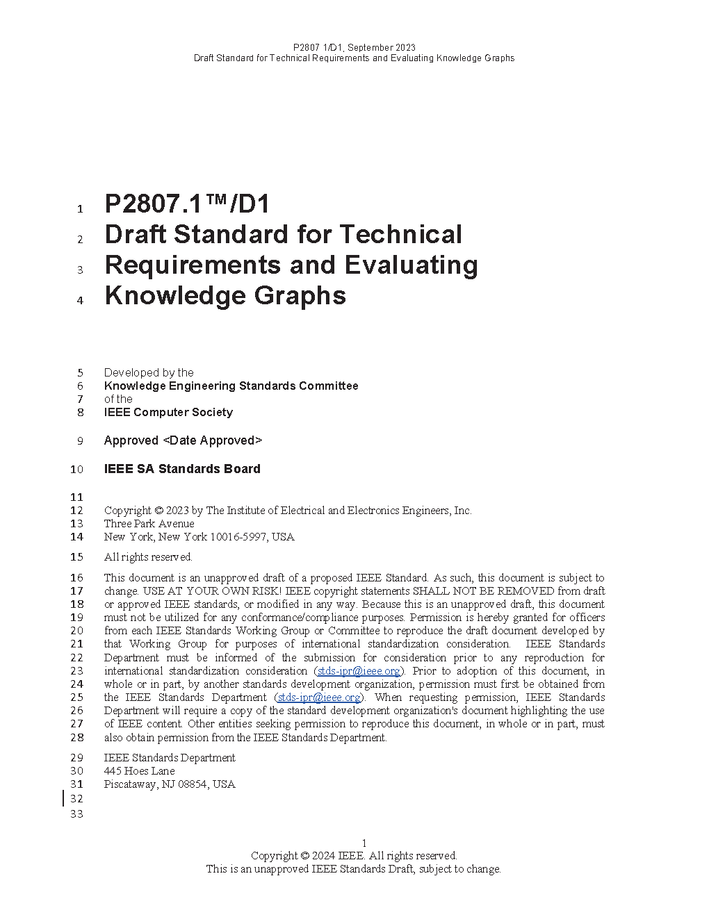 IEEE Draft Standard for Technical Requirements and Evaluation of Knowledge Graphs