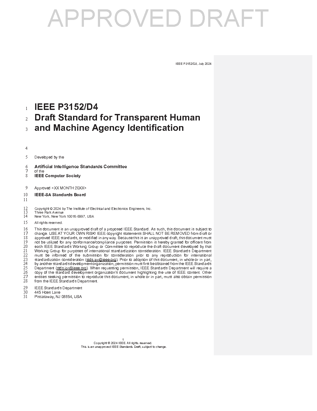 IEEE Draft Standard for Transparent Human and Machine Agency Identification