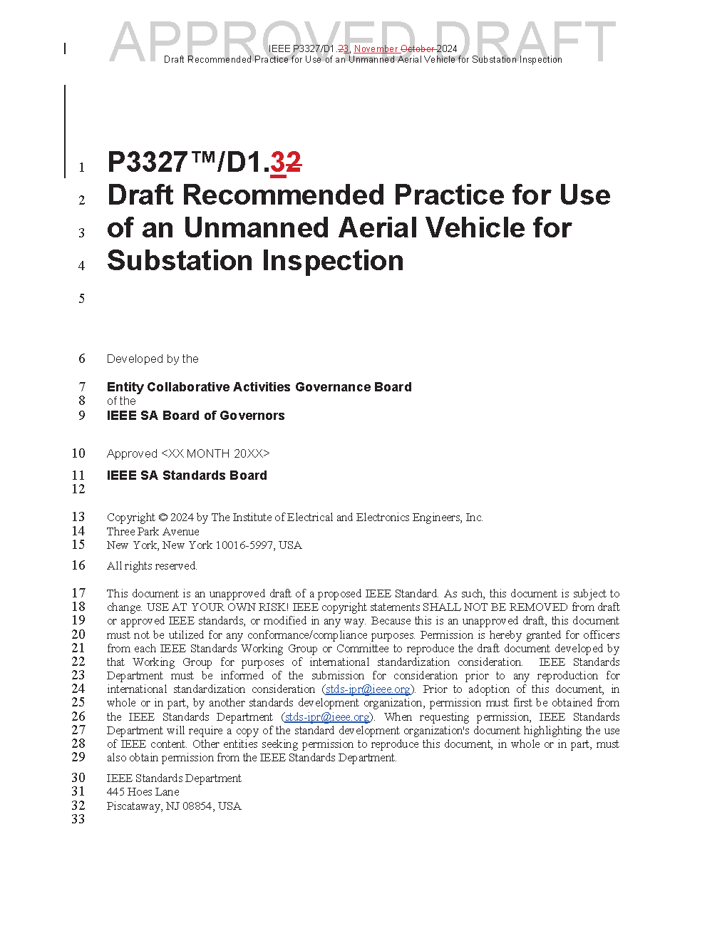 IEEE Draft Recommended Practice for Use of an Unmanned Aerial Vehicle for Substation Inspection