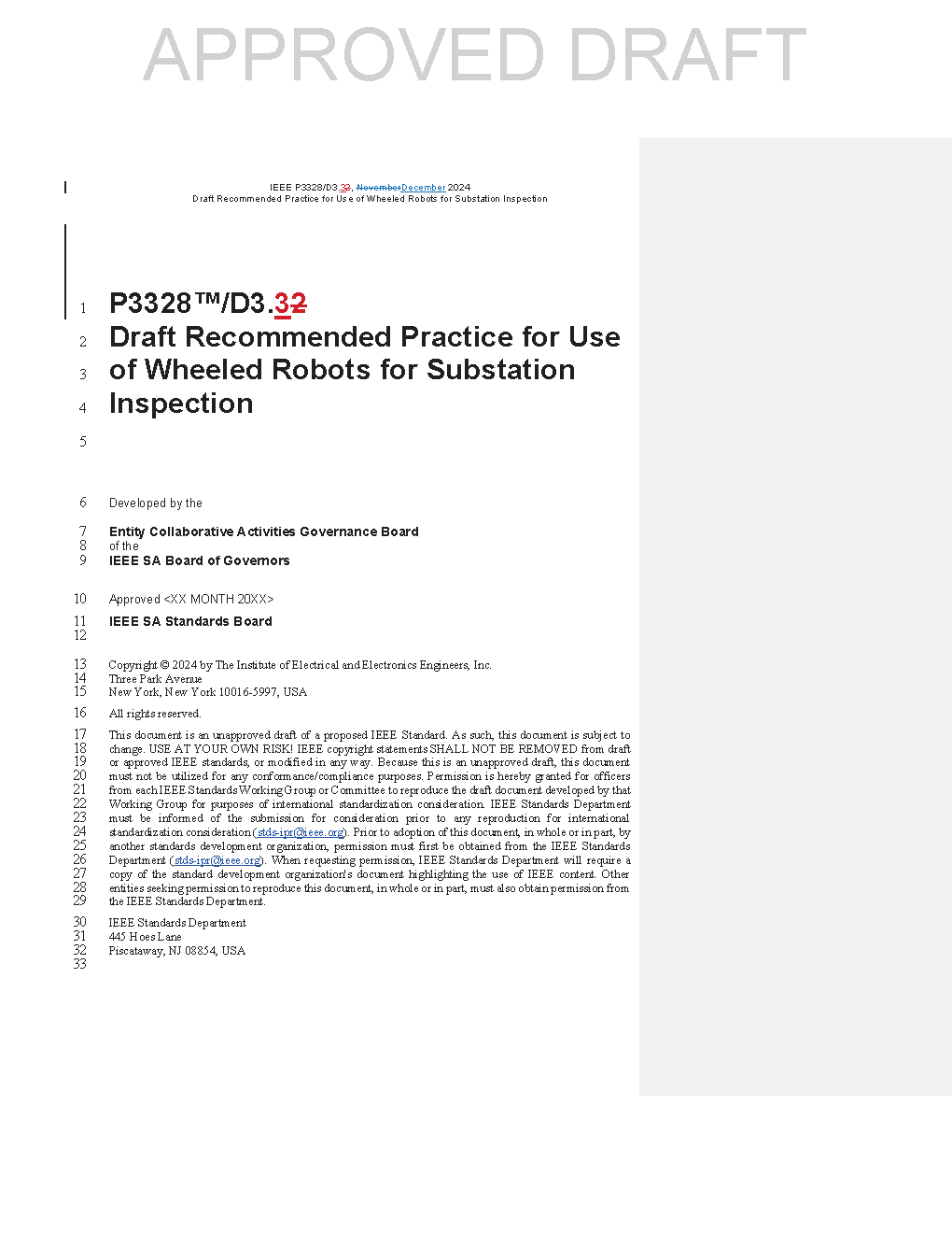 IEEE Draft Recommended Practice for Use of Wheeled Robots for Substation Inspection