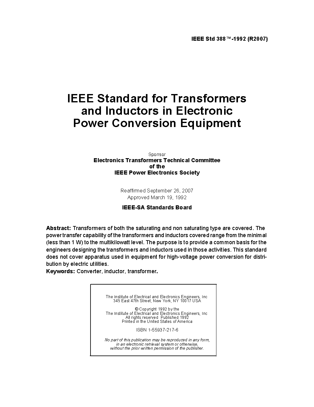 IEEE Standard for Transformers and Inductors in Electronic Power Conversion Equipment