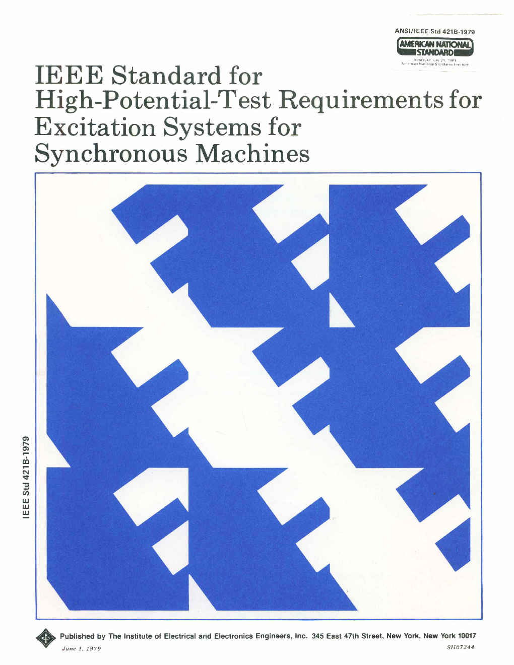 This standard applies to high-potential testing of complete excitation systems and their components for synchronous machines. The components of the excitation system are described in IEEE Std 421-1972, Criteria and Definitions for Excitation Systems for Synchronous Machines. Also included are auxiliary devices that are exposed to excitation system stresses. Examples of such auxiliary devices are temperature indicators, transducers, meters, etc. This standard does not cover the synchronous-machine field winding or field circuit breaker and discharge resistor.