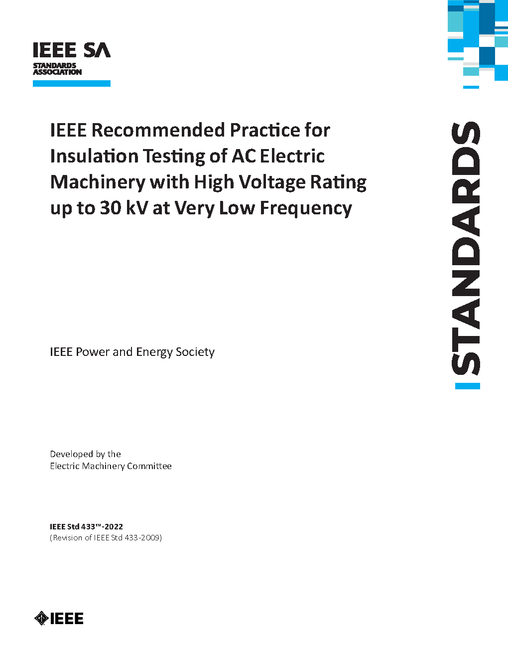 This document applies to large ac rotating machines rated at 10 000 kVA or greater and rated 6000 V or higher. It covers acceptance testing of new equipment in the factory or on-site after erection. This recommended practice also covers routine maintenance testing of machines that have been in service.