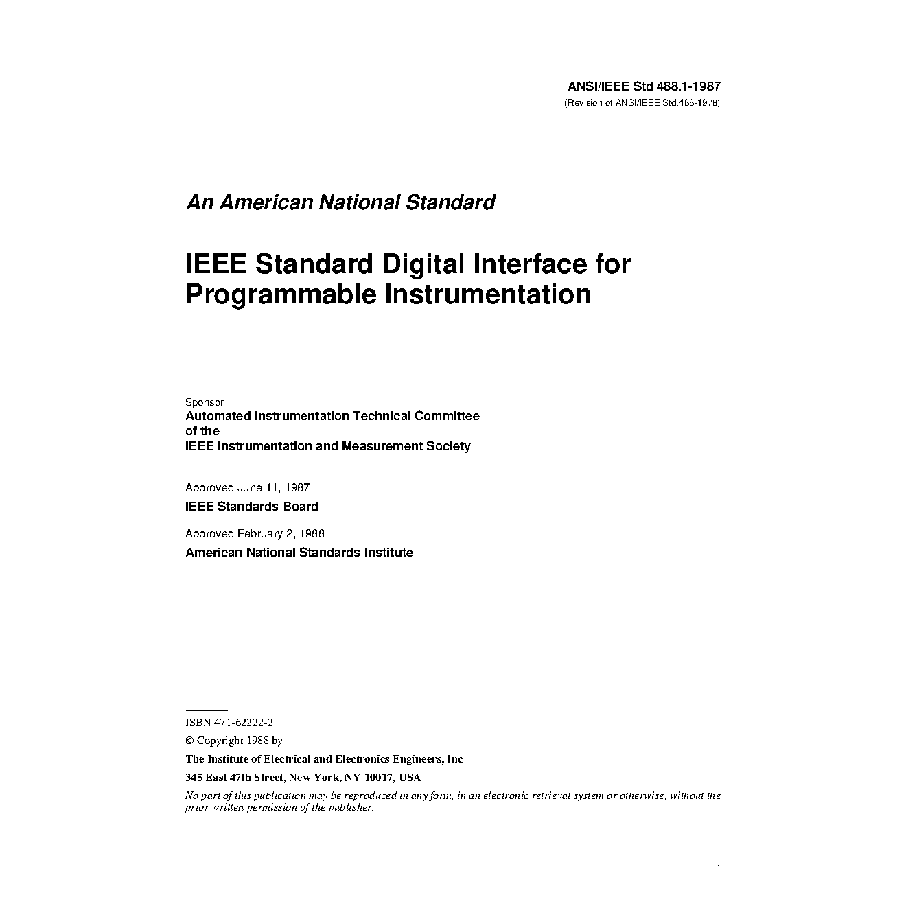 This standard will build on the interface functions defined in IEEE Std. 488.1-1987 to define a set of interface functions that will enable higher transfer rates between devices adhering to this specification while still maintaining the ability for these devices to communicate with existing IEEE Std. 488.1 devices. Topics within the scope of this standard include: Extensions to the interface functions defined in IEEE Std. 488.1; Definition of new interface functions; Possible extensions to the remote message codes defined in IEEE Std. 488.1; Guidelines for calculating delays required to implement the new protocol at different distances.