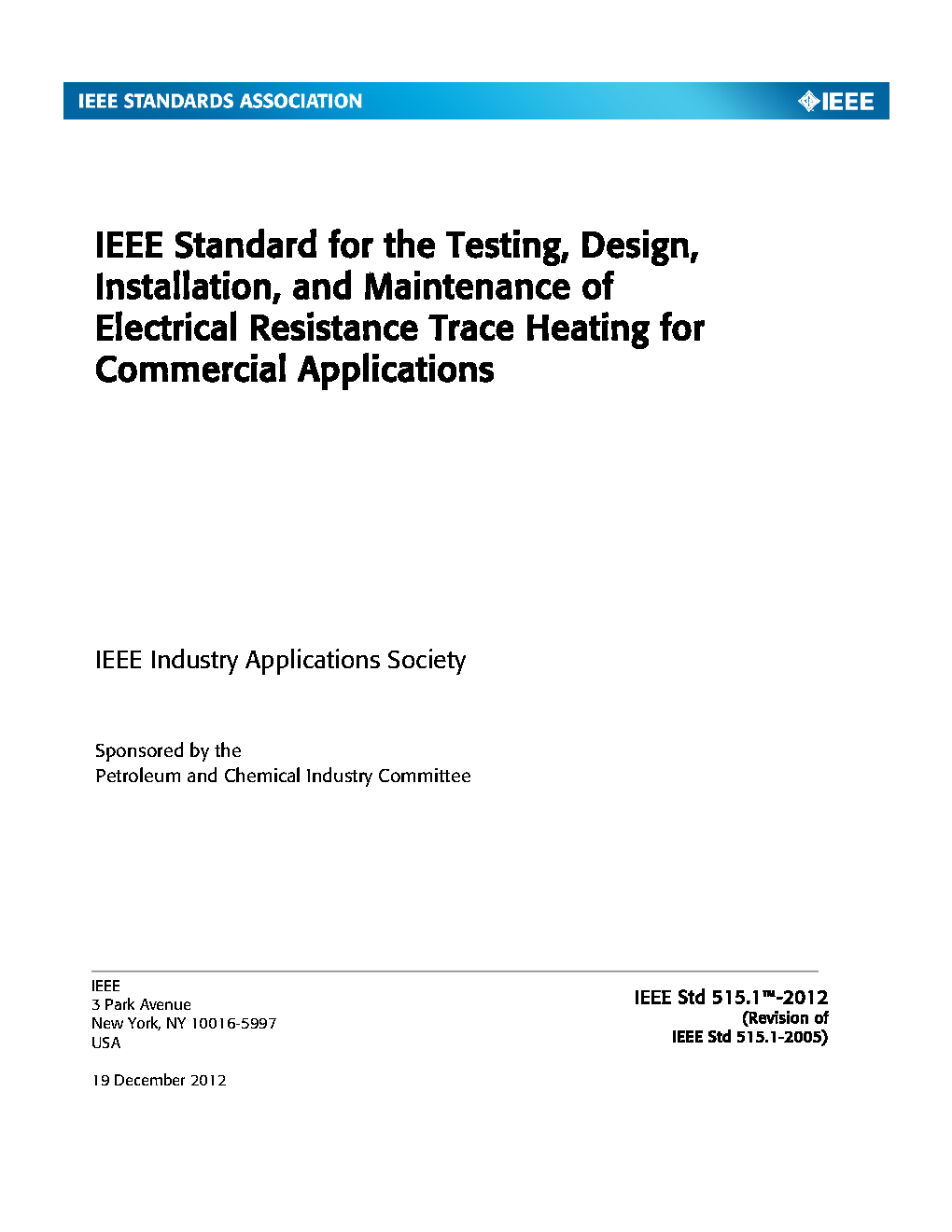 IEEE Recommended Practice for the Testing, Design, Installation, and Maintenance of Electrical Resistance Heat Tracing for Commercial Applications
