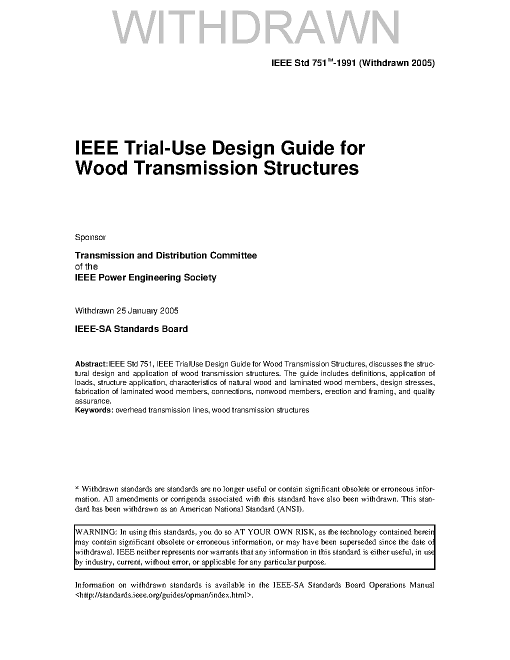 IEEE Trial-Use Design Guide for Wood Transmission Structures