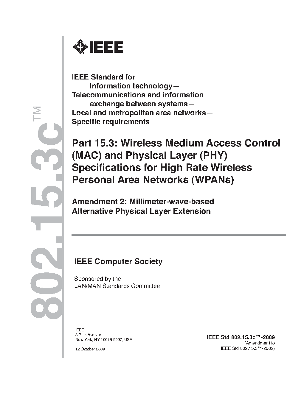 The purpose of this amendment is to improve the ability of IEEE Std 802.15.3 to support emerging wireless multimedia applications; e.g., multimedia streaming, time synchronization, low latency data transfer, and peripheral connectivity.