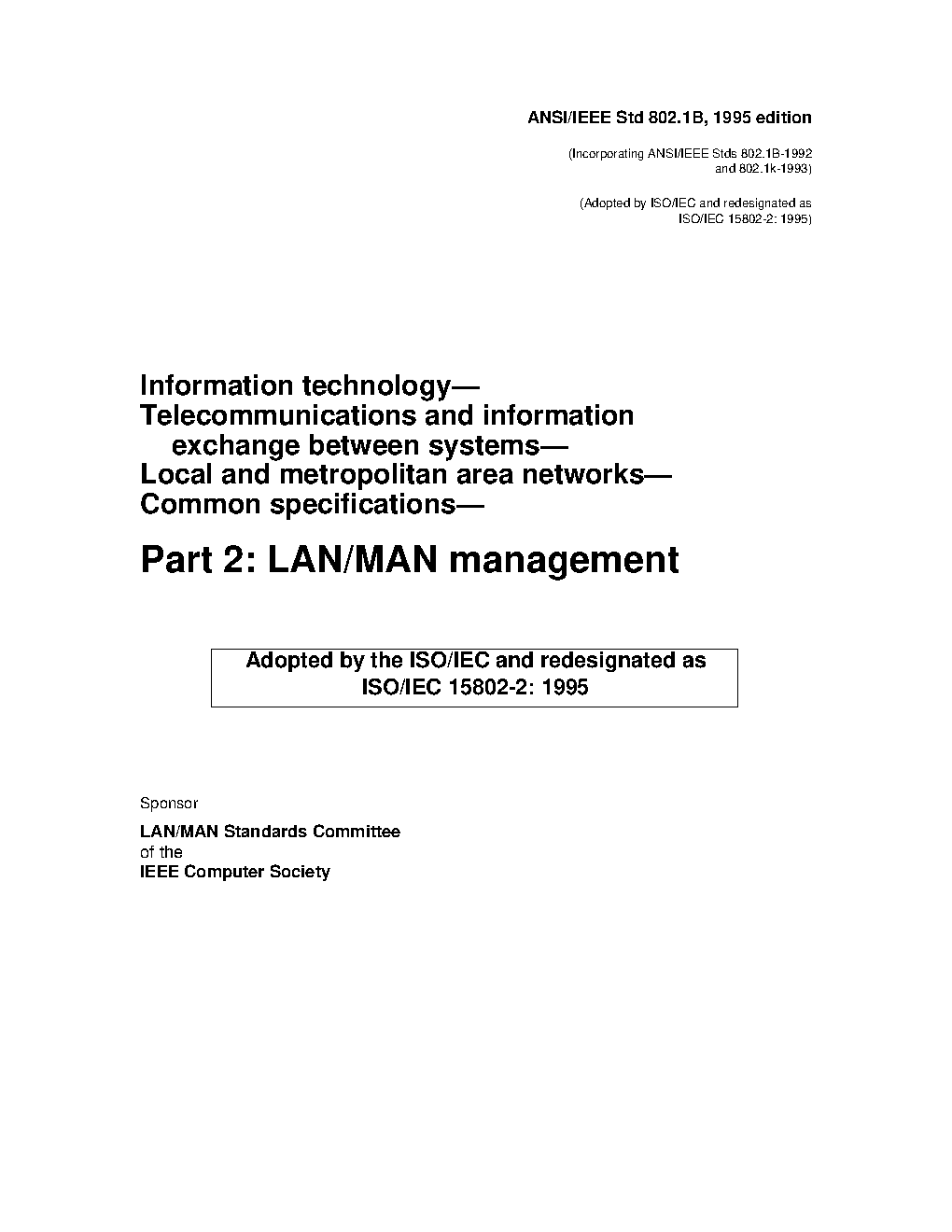 Services and protocol elements that permit the exchange of management information between stations attached to ISO/IEC standard local and metropolitan area networks are defined. The standard includes the specification of managed objects that permit the operation of the protocol elements to be remotely managed. In addition, an architecture for station discovery and the dynamic control of event forwarding is defined. Services and protocols that support station discovery and the dynamic control of event forwarding are defined.