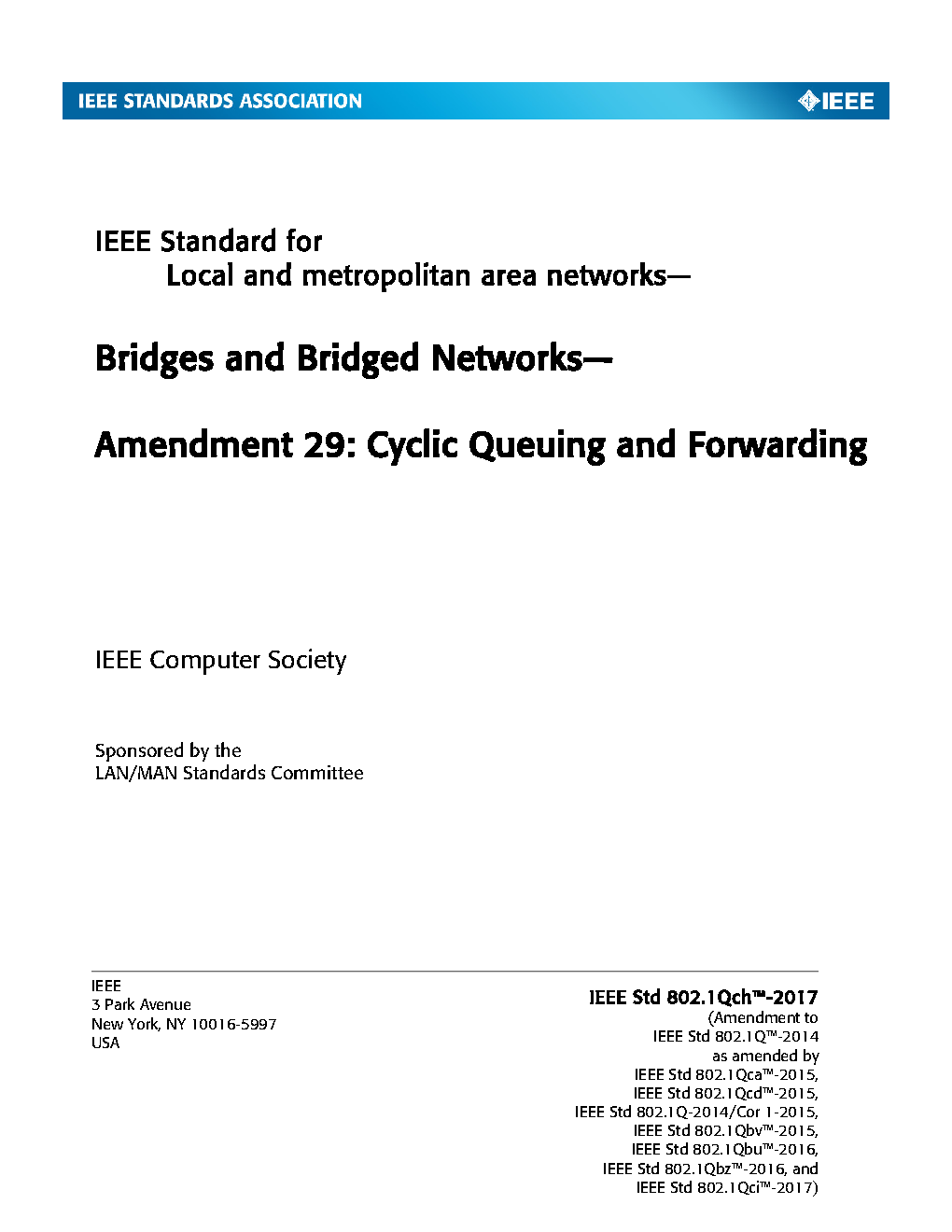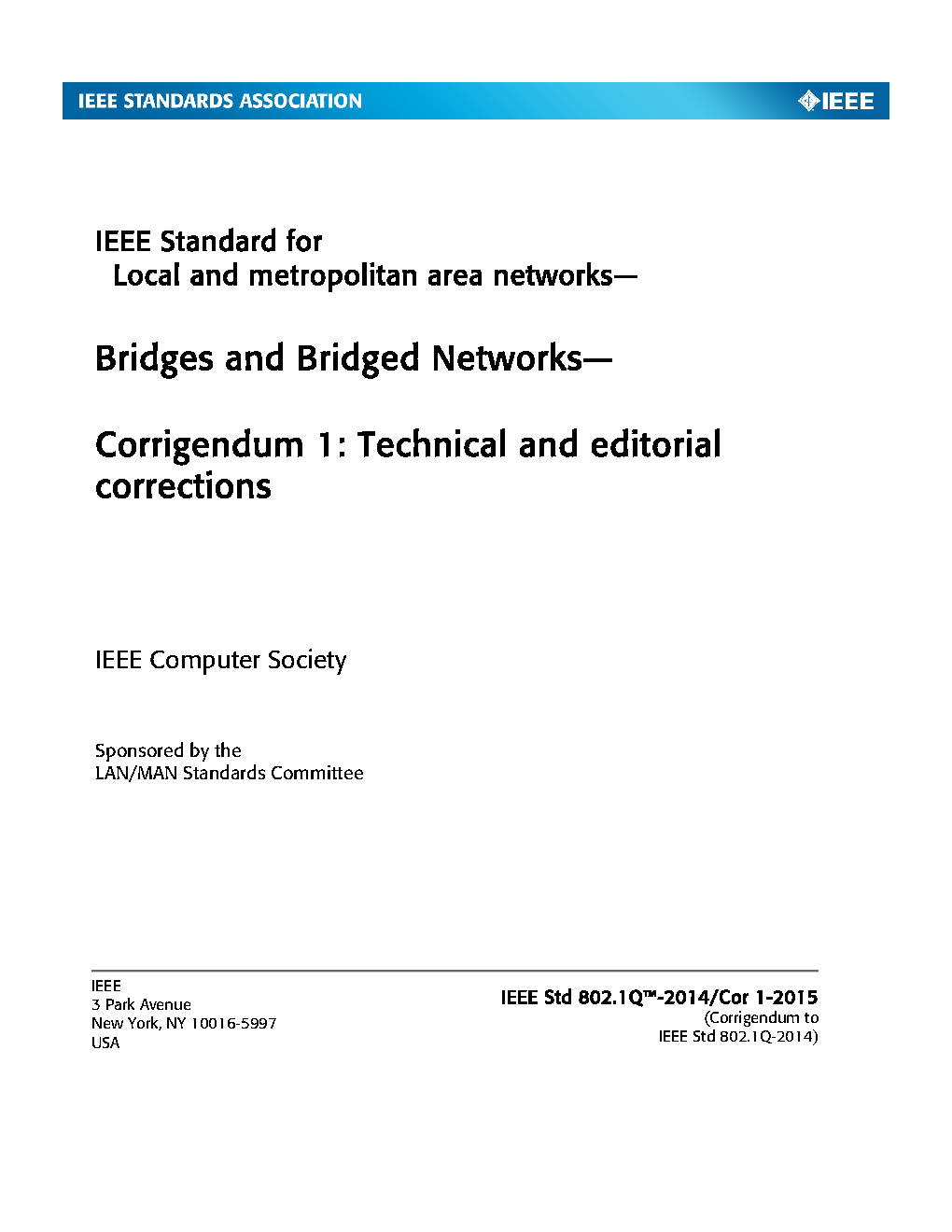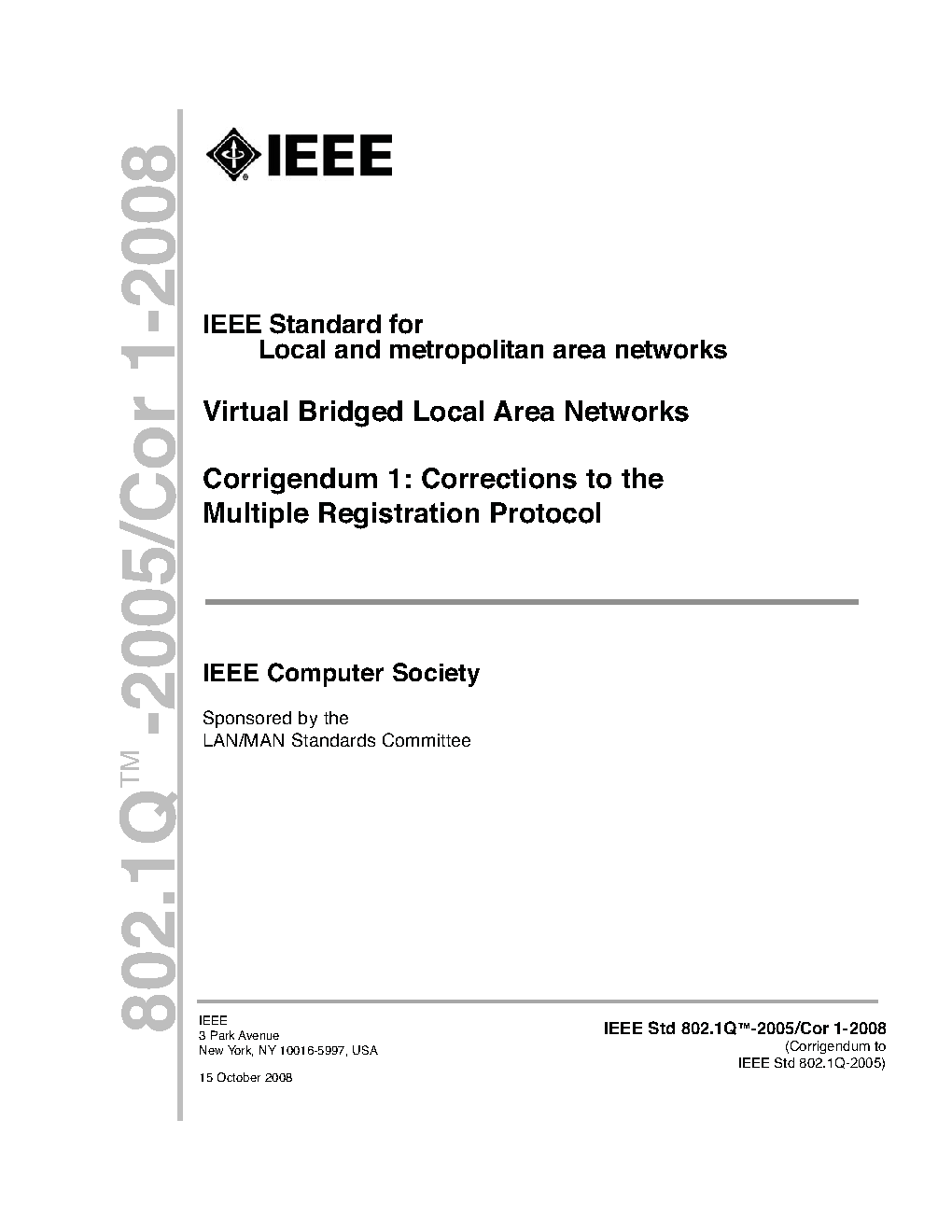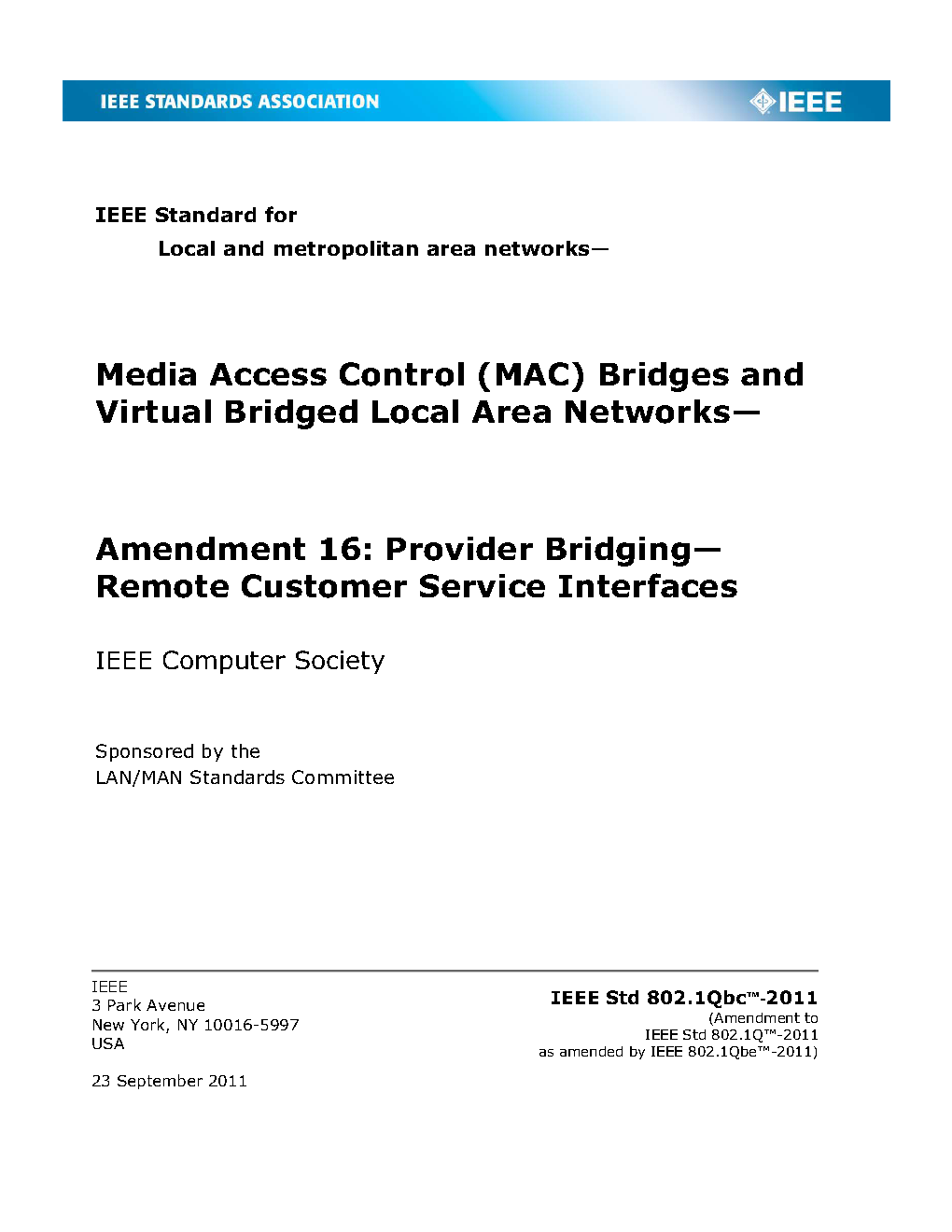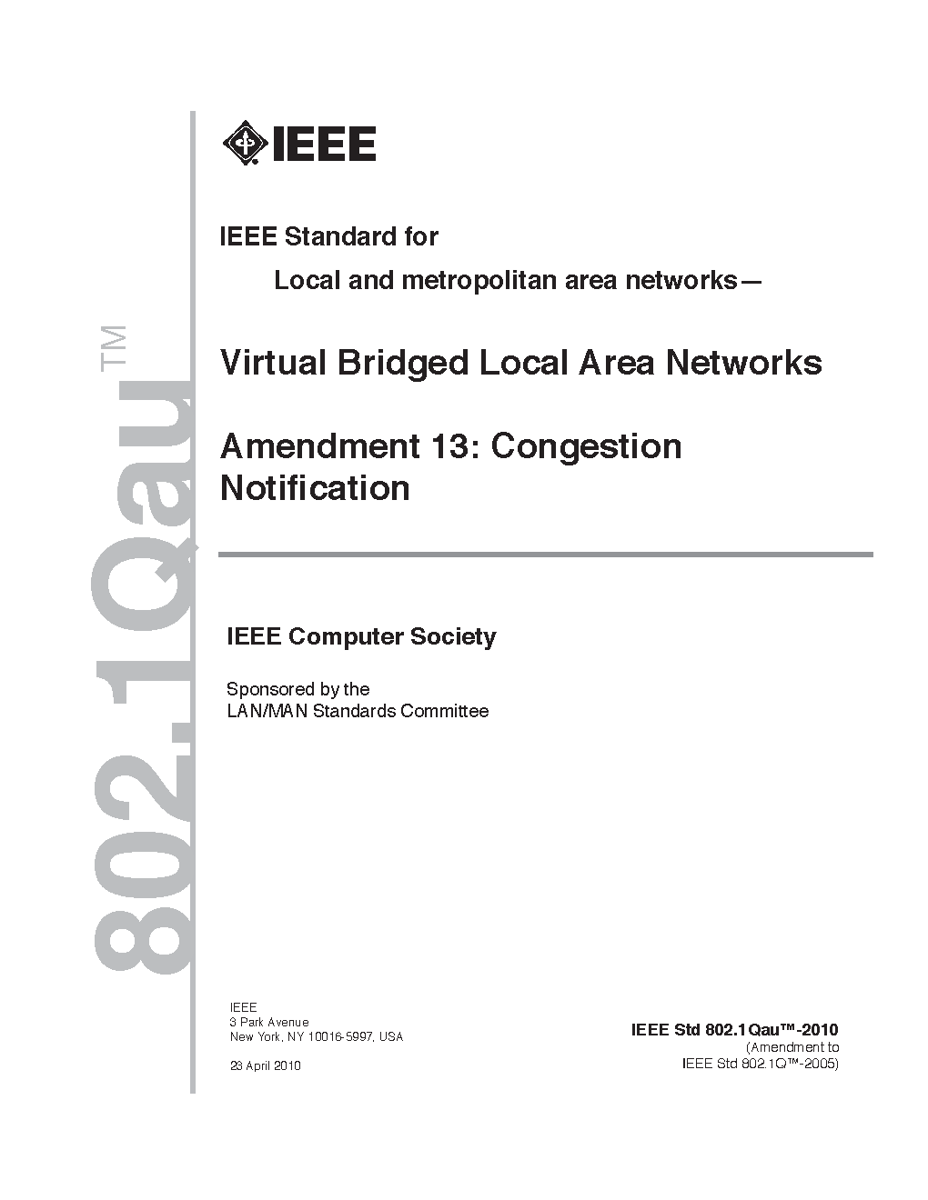 Incorporates IEEE Std 802.1Q-2005, IEEE Std 802.1ad-2005, IEEE Std 802.1ak-2007, IEEE Std 802.1ag-2007, IEEE Std 802.1ah-2008, IEEE Std 802-1Q-2005/Cor-1-2008, IEEE Std 802.1ap-2008, IEEE Std 802.1Qaw-2009, IEEE Std 802.1Qay-2009, IEEE Std 802.1aj-2009, IEEE Std 802.1Qav-2009, IEEE Std Qau-2010, and IEEE Std Qat-2010.