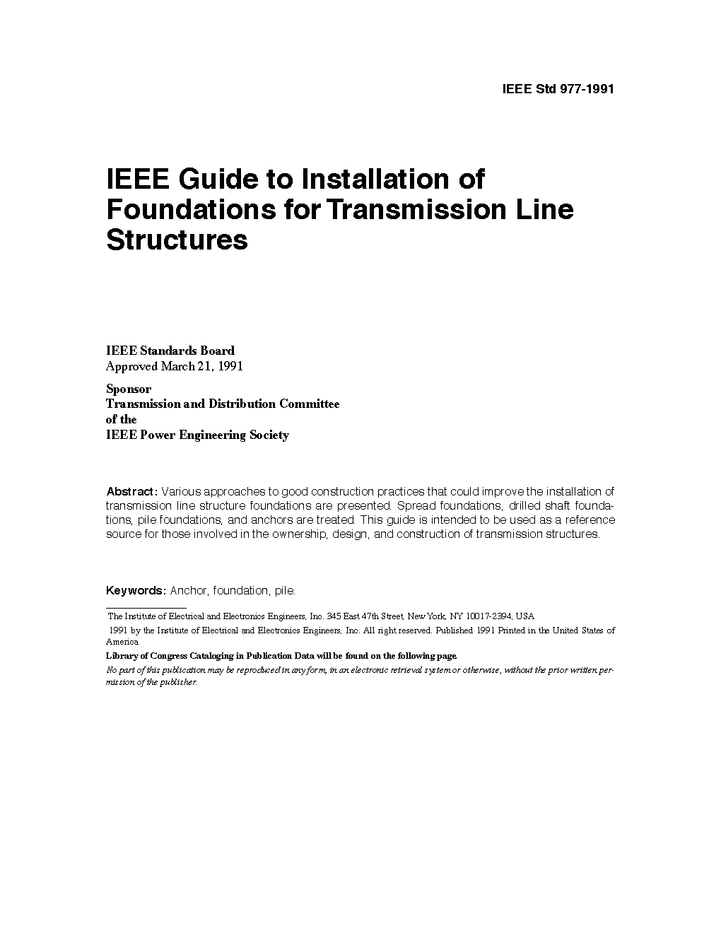 IEEE Guide to Installation of Foundations for Transmission Line Structures