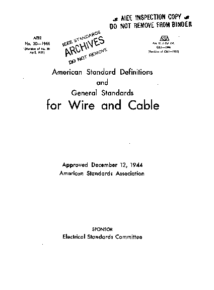 AIEE American Standard Definitions and General Standards for Wire and Cable