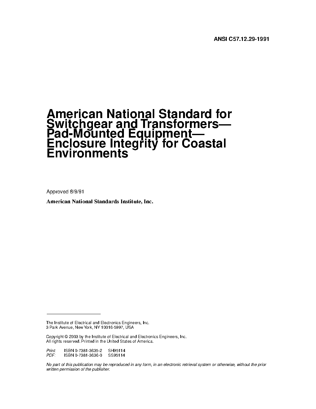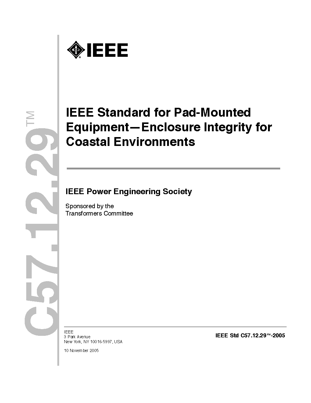 American National Standard for Switchgear and Transformers - Pad-Mounted Equipment- Enclosure Integrity for Coastal Environments