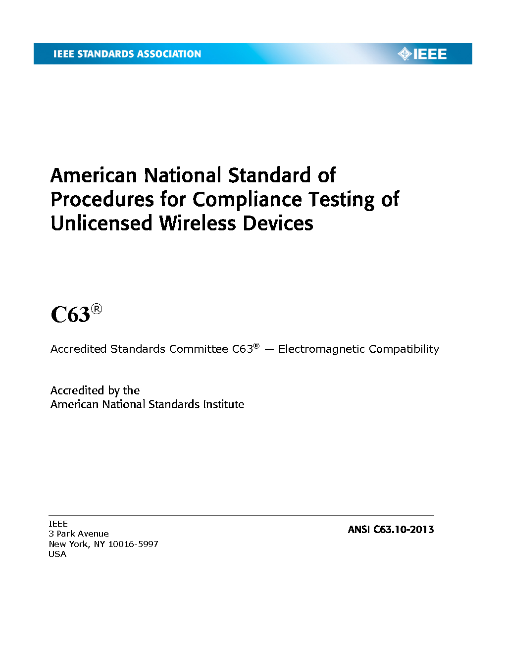 American National Standard of Procedures for Compliance Testing of Unlicensed Wireless Devices