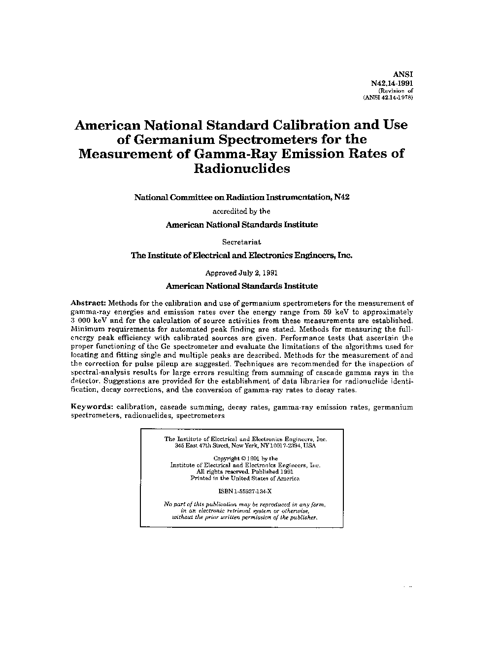 American National Standard Calibration and Usage of Germanium Detectors for Measurement of Gamma-Ray Emission of Radionuclides