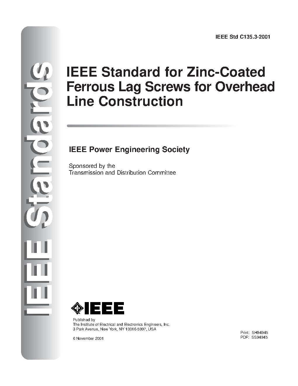IEEE Standard for Zinc-Coated Ferrous Lag Screws for Overhead Line Construction