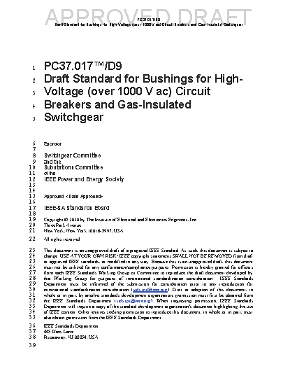 IEEE Standard for Bushings for High-Voltage (Over 1000 Vac) Circuit Breakers and Gas-Insulated Switchgear