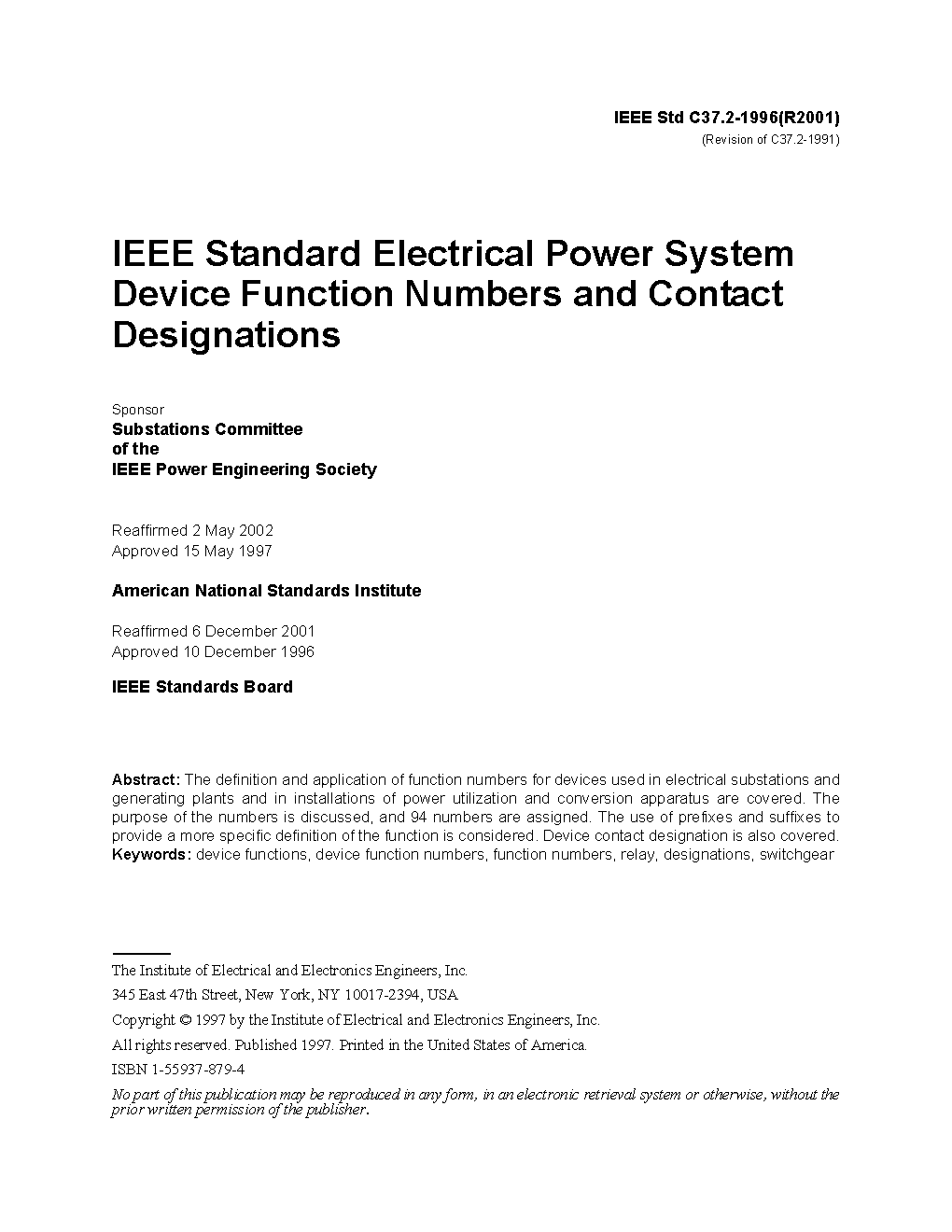 IEEE C37.2:1996 (R2001)