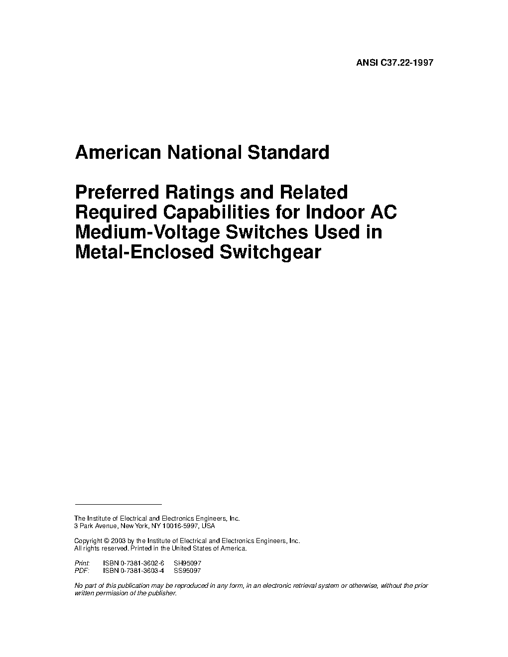 This standard provides preferred ratings for indoor AC medium-voltage switches used in metal-enclosed switchgear.