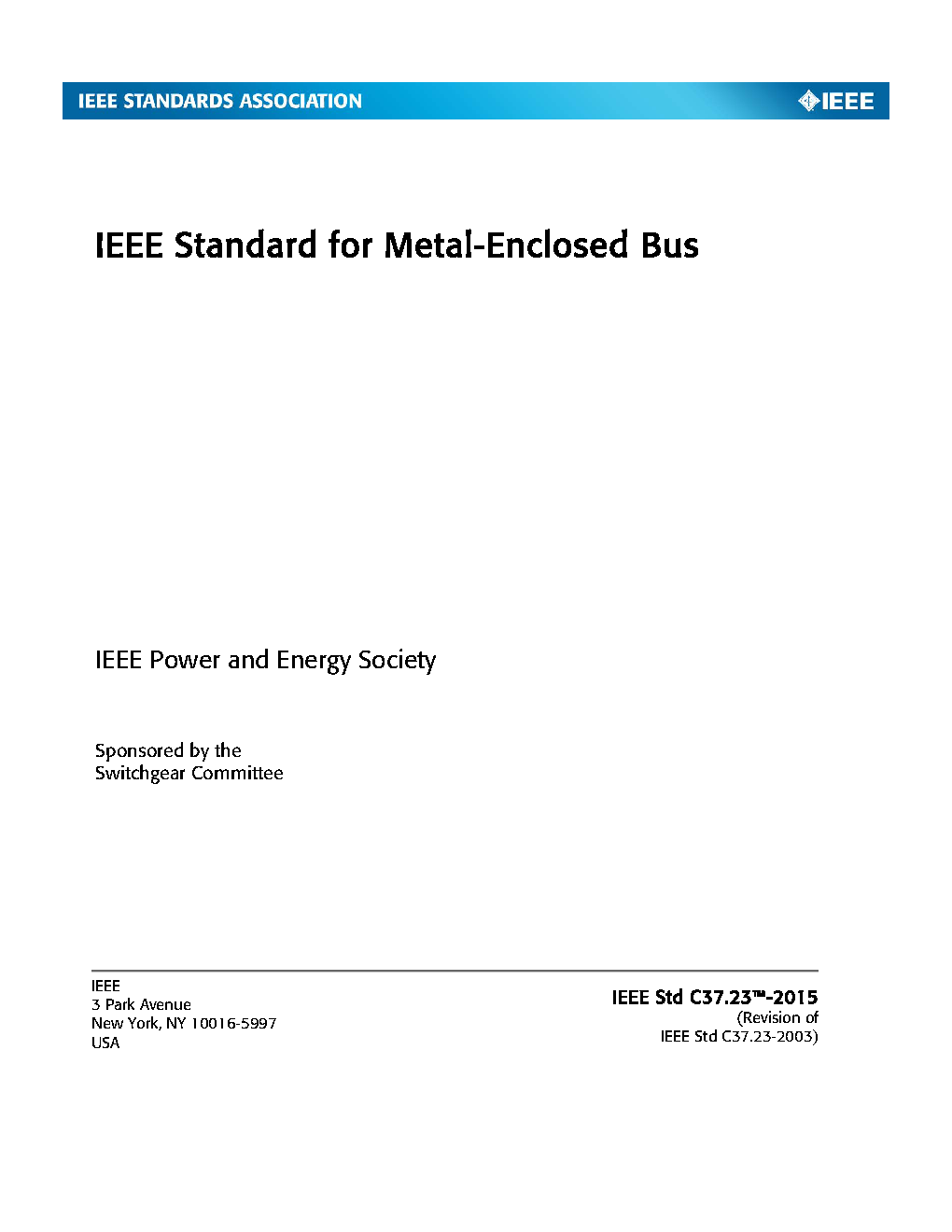 Interpretations are available at: http://standards.ieee.org/reading/ieee/interp/C37.23-1987.html This IEEE Standards product is part of the C37 family on Switchgear, Substations and Protective Relays. Assemblies of metal-enclosed conductors and their associated interconnections, enclosures, supporting structures, switches, and disconnecting links are addressed. Ratings, tests, construction, miscellaneous accessories, and loss calculation for isolated-phase buses are covered. Specifically excluded are busways or bus assemblies for distribution of electric power less than 600 V, which consist of enclosed sectionalized prefabricated bus bars or associated structures and fittings, such as feeder busways (indoor or outdoor), plug-in busways (indoor only), and bus assemblies utilized at voltages in excess of 38.0 kV.