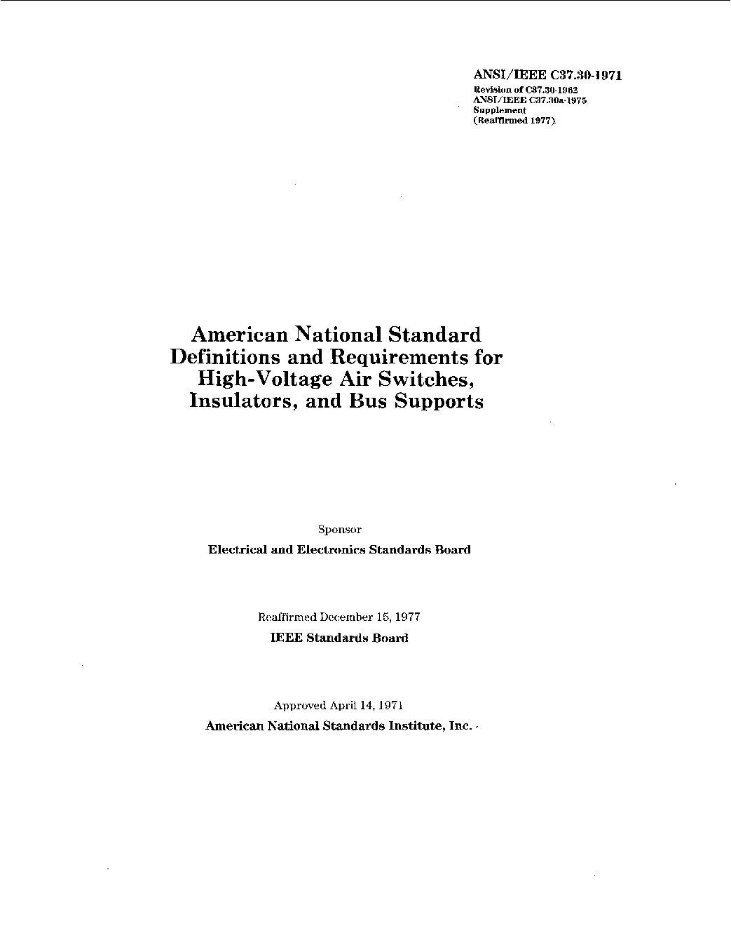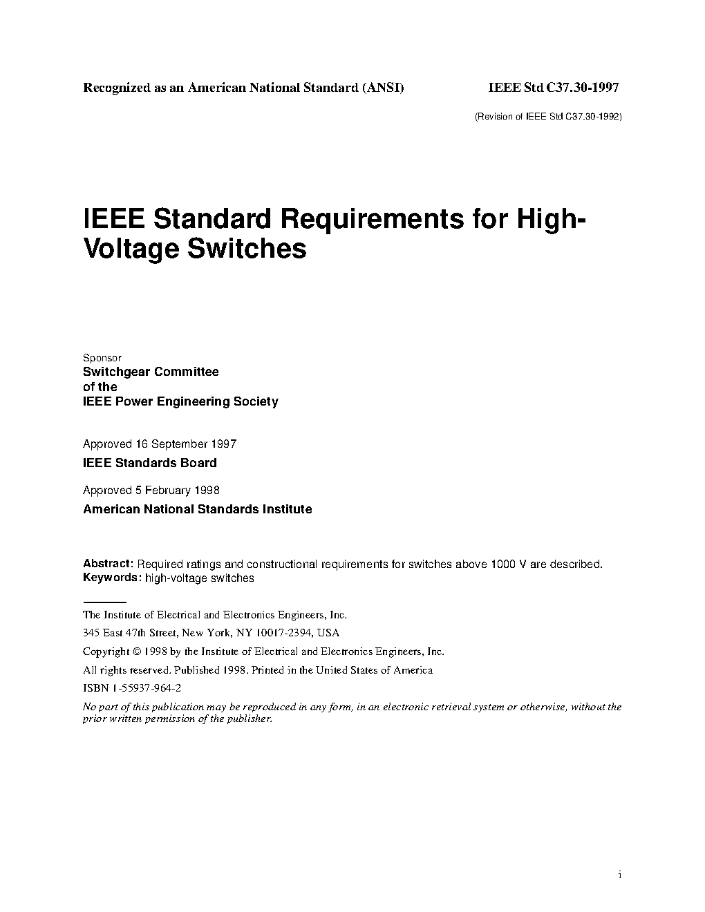 IEEE Standard Requirements for High Voltage Switches