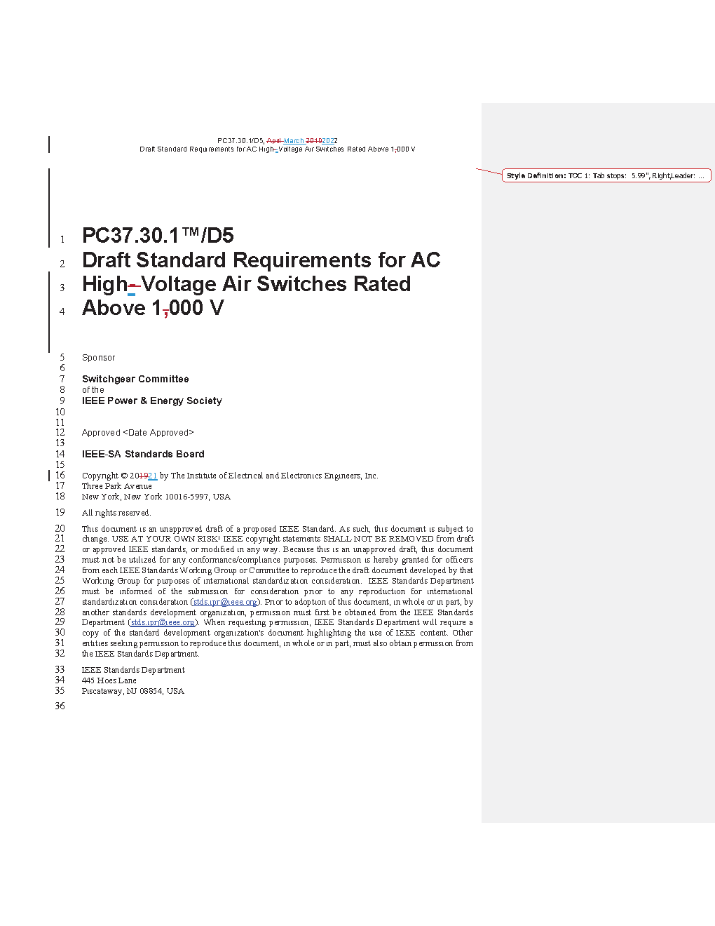 IEEE Standard Requirements for AC High-Voltage Air Switches Rated Above 1000 V -- Amendment 1: Criteria for acceptance
